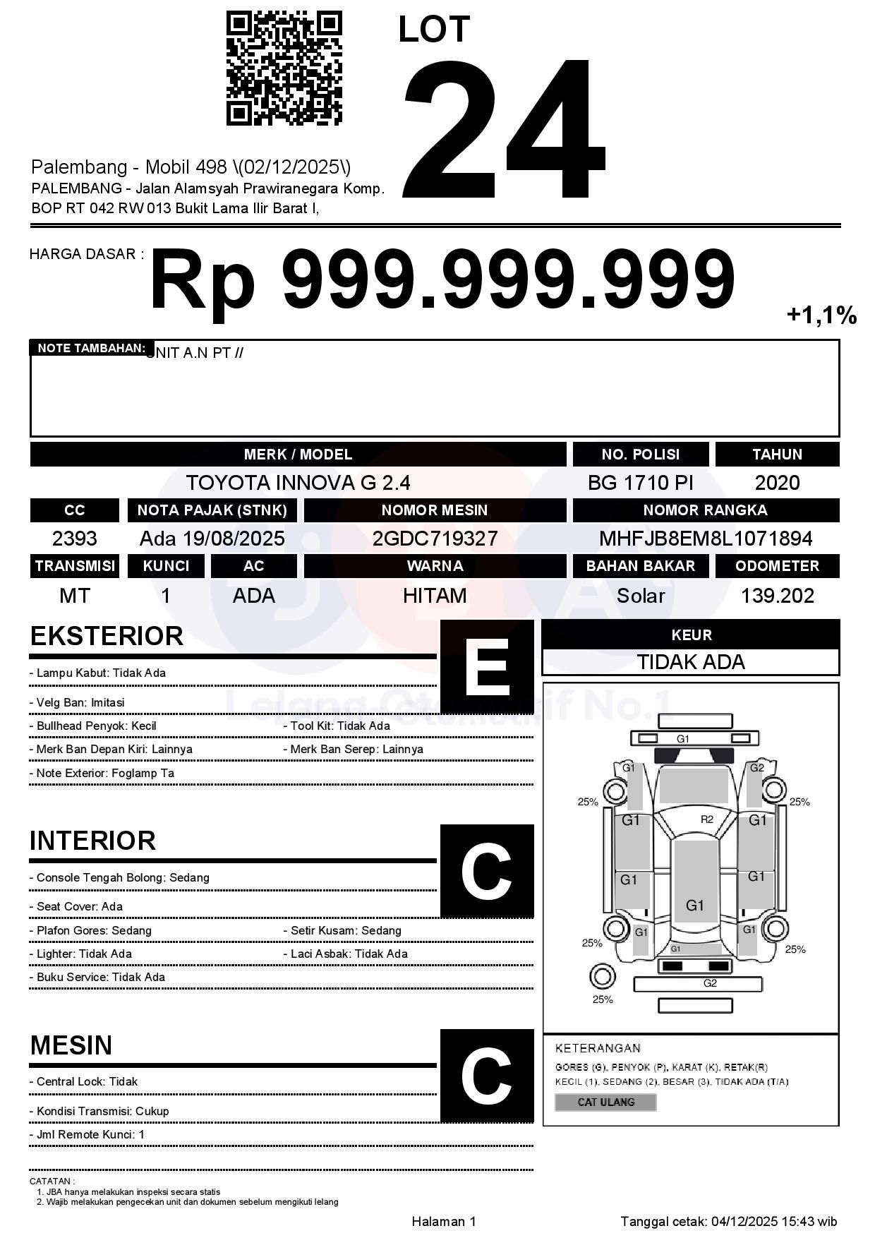 Auction Date: 09/12/2025 1:00 | WIB