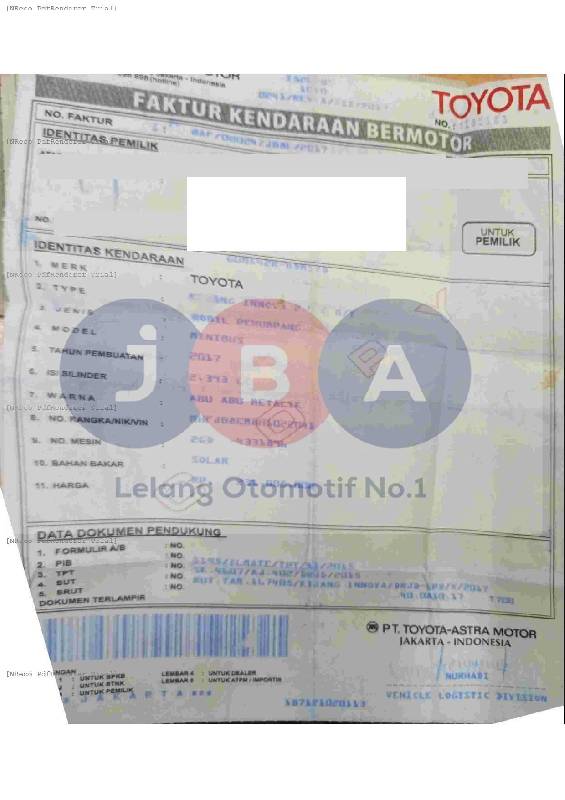 BLOKIR BBN WAJIB BALIK NAMA // EX BBN // TIPE PADA DOK DAN CEK SAMSAT KIJANG INNOVA 2.4 G MT // SCAN FAKTUR TIDAK TERLIHAT JELAS/BURAM //