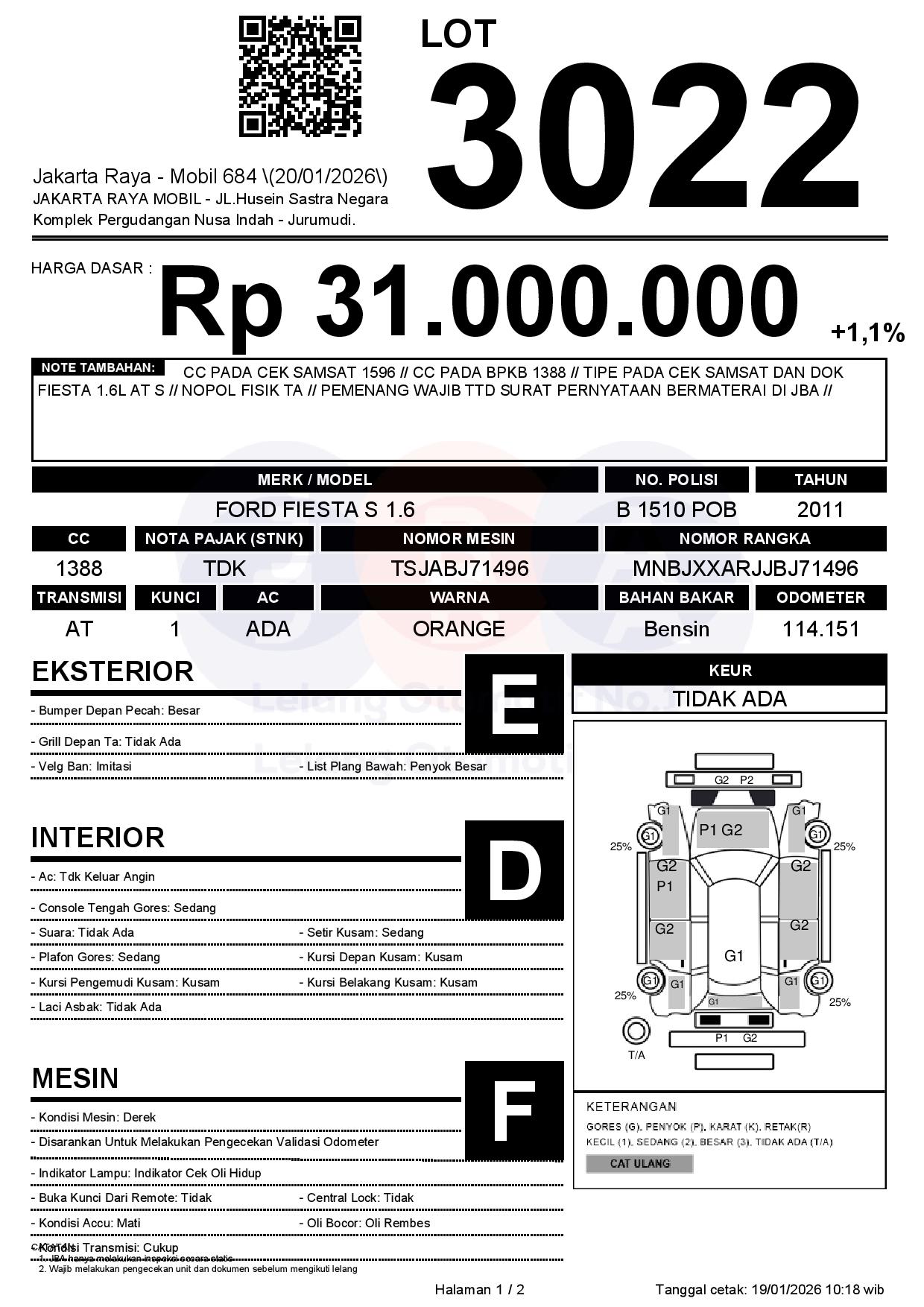 Auction Date: 20/01/2026 13:00 | WIB