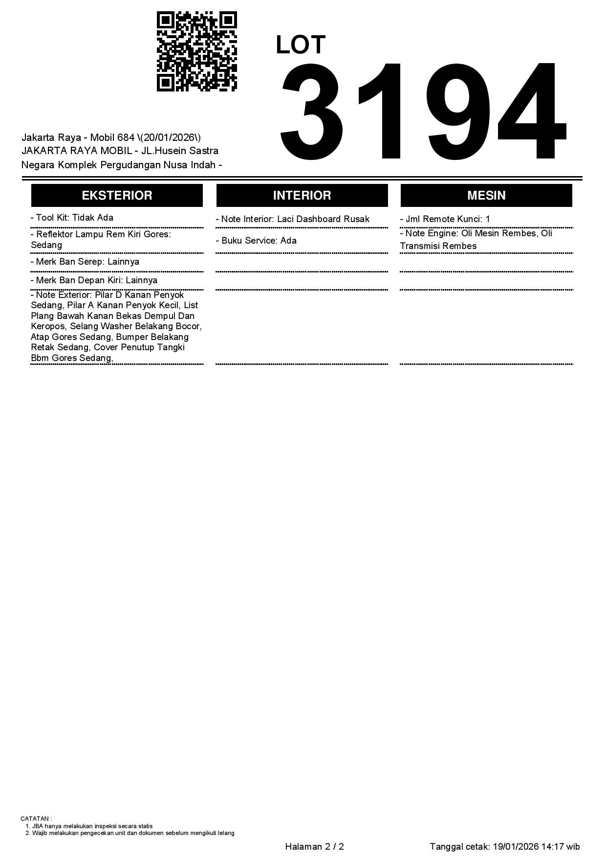 Auction Date: 20/01/2026 13:00 | WIB