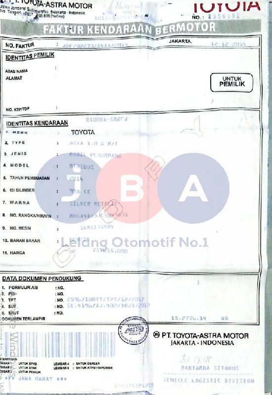 NOSIN TIDAK TERBACA TERTUTUP 1 DIGIT // PEMENANG WAJIB TTD SURAT PERNYATAAN BERMATERAI DI JBA // NAMA PEMILIK PADA FAKTUR BERBEDA DENGAN BPKB // EX BBN