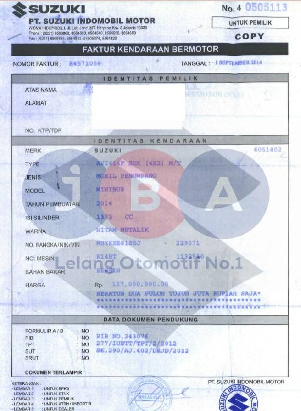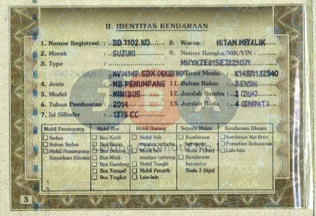 AN PT // CC PADA DOKUMEN 1373 // TYPE UNIT DIDOC AVI414F SDX 4X2 MT // TERDAPAT BEKAS TIPEX PADA PENULISAN IDENTITAS KENDARAAN BPKB // NAMA PEMILIK STNK KURANG PT //