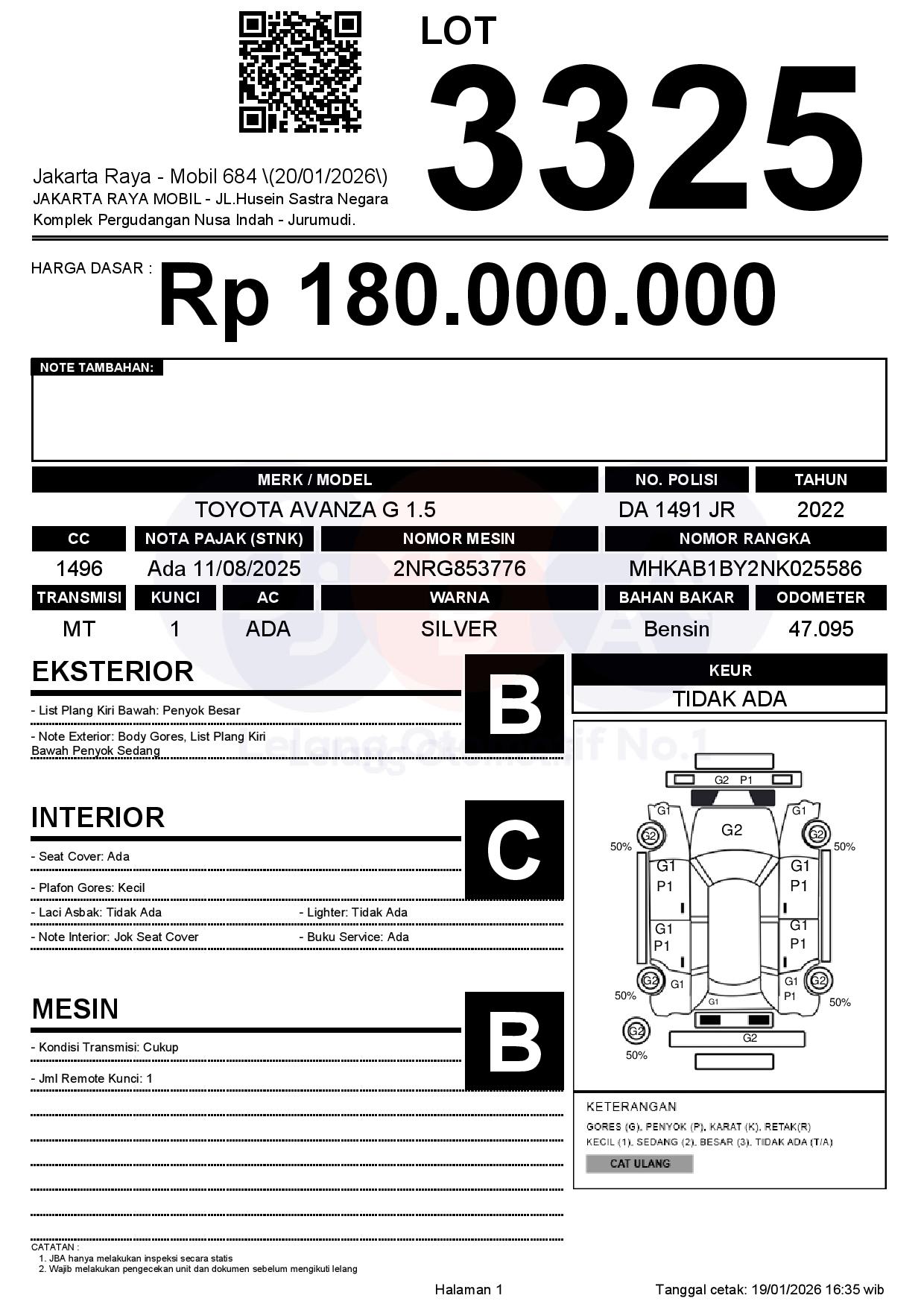 Auction Date: 20/01/2026 13:00 | WIB