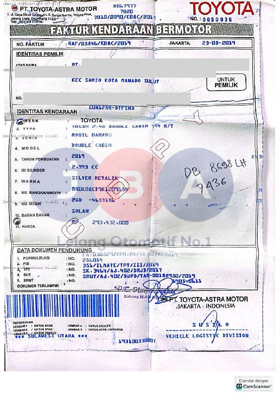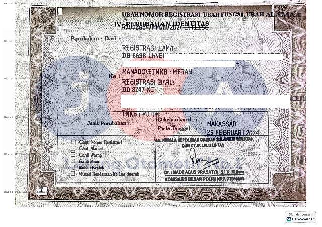 AN PT // DARI LUAR DAERAH // EX GANTI NOPOL // NOPOL FISIK TIDAK TERLIHAT JELAS // WARNA DI DOC FAKTUR BPKB SILVER METALIK DAN STNK PUTIH