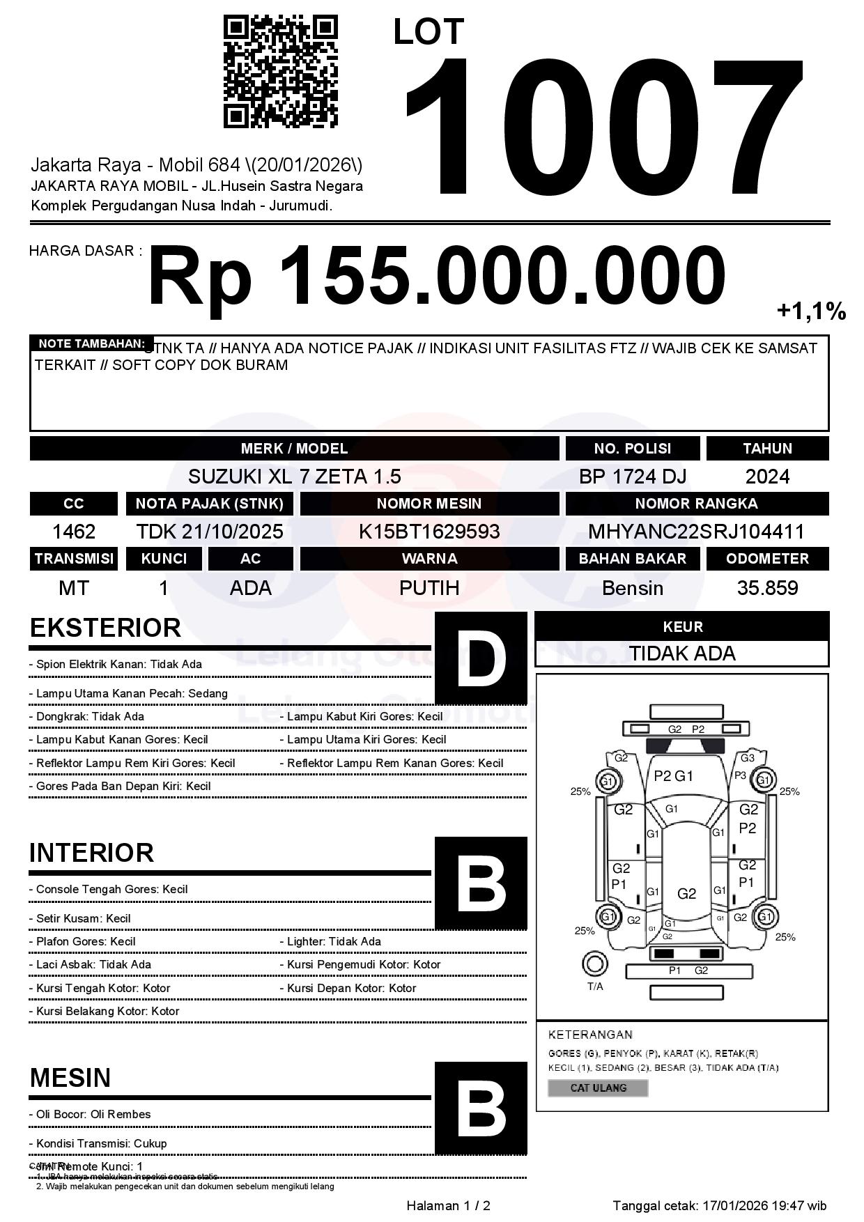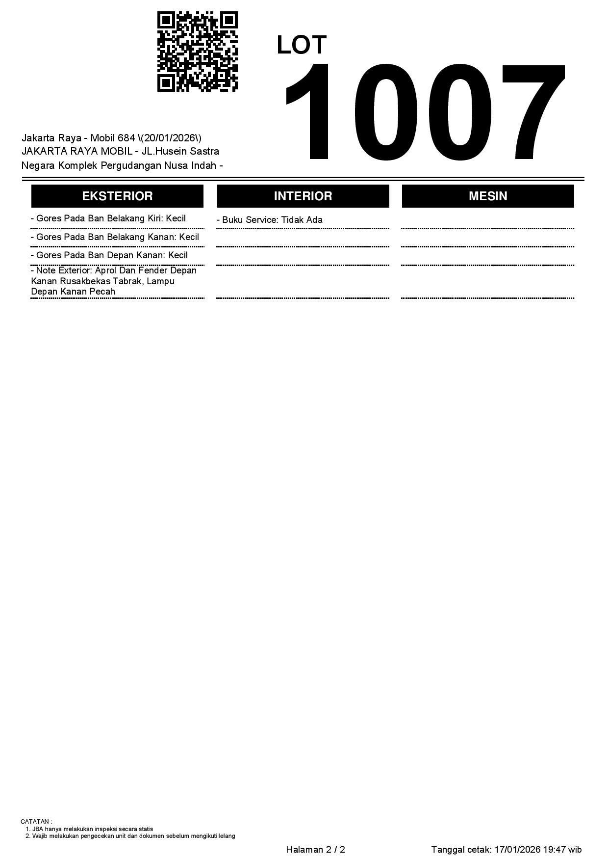 Auction Date: 20/01/2026 13:00 | WIB