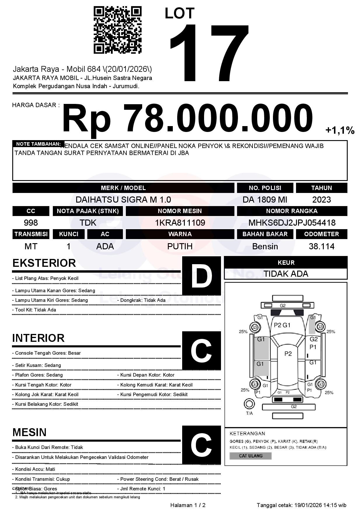 Auction Date: 20/01/2026 13:00 | WIB