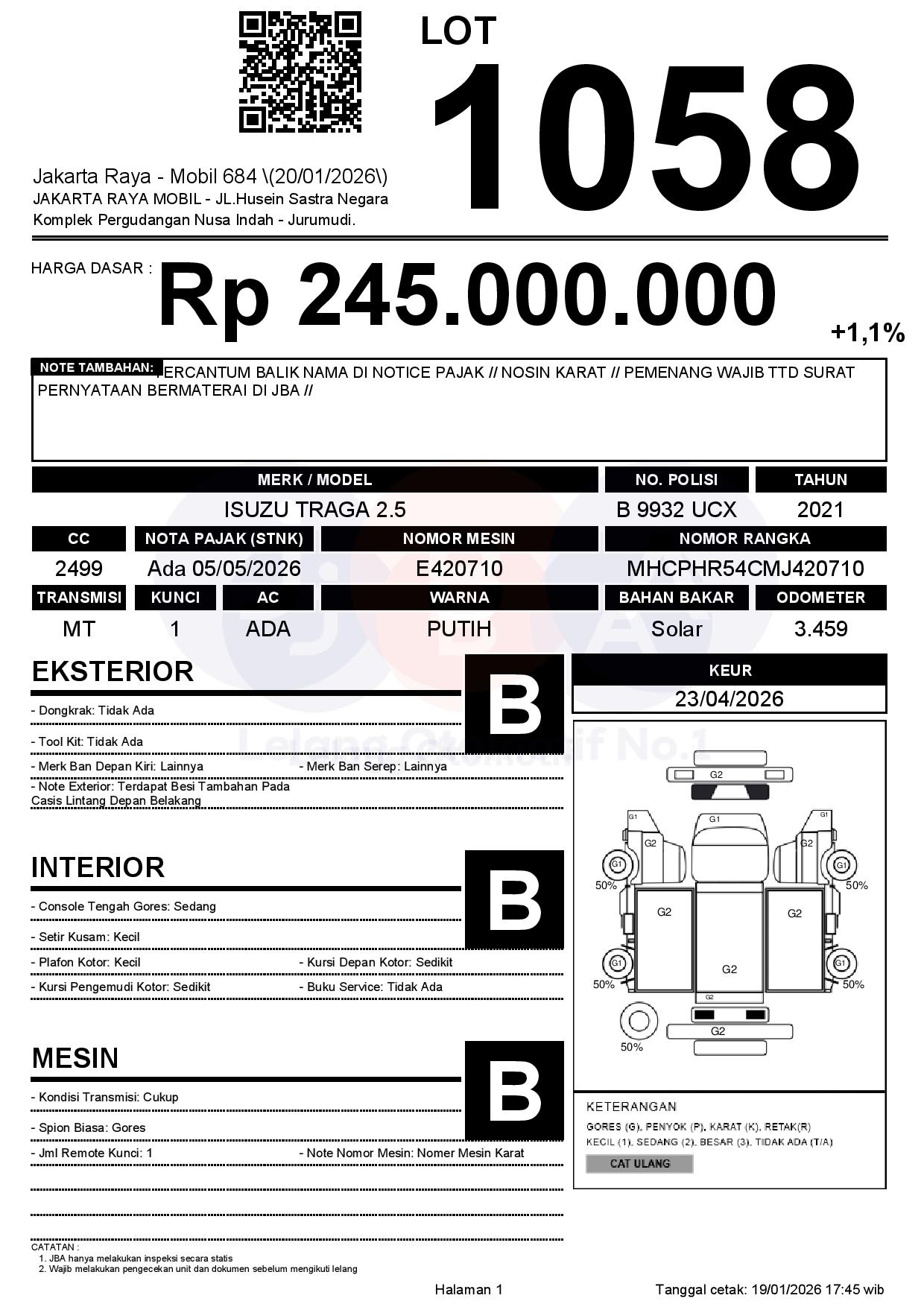 Auction Date: 20/01/2026 13:00 | WIB