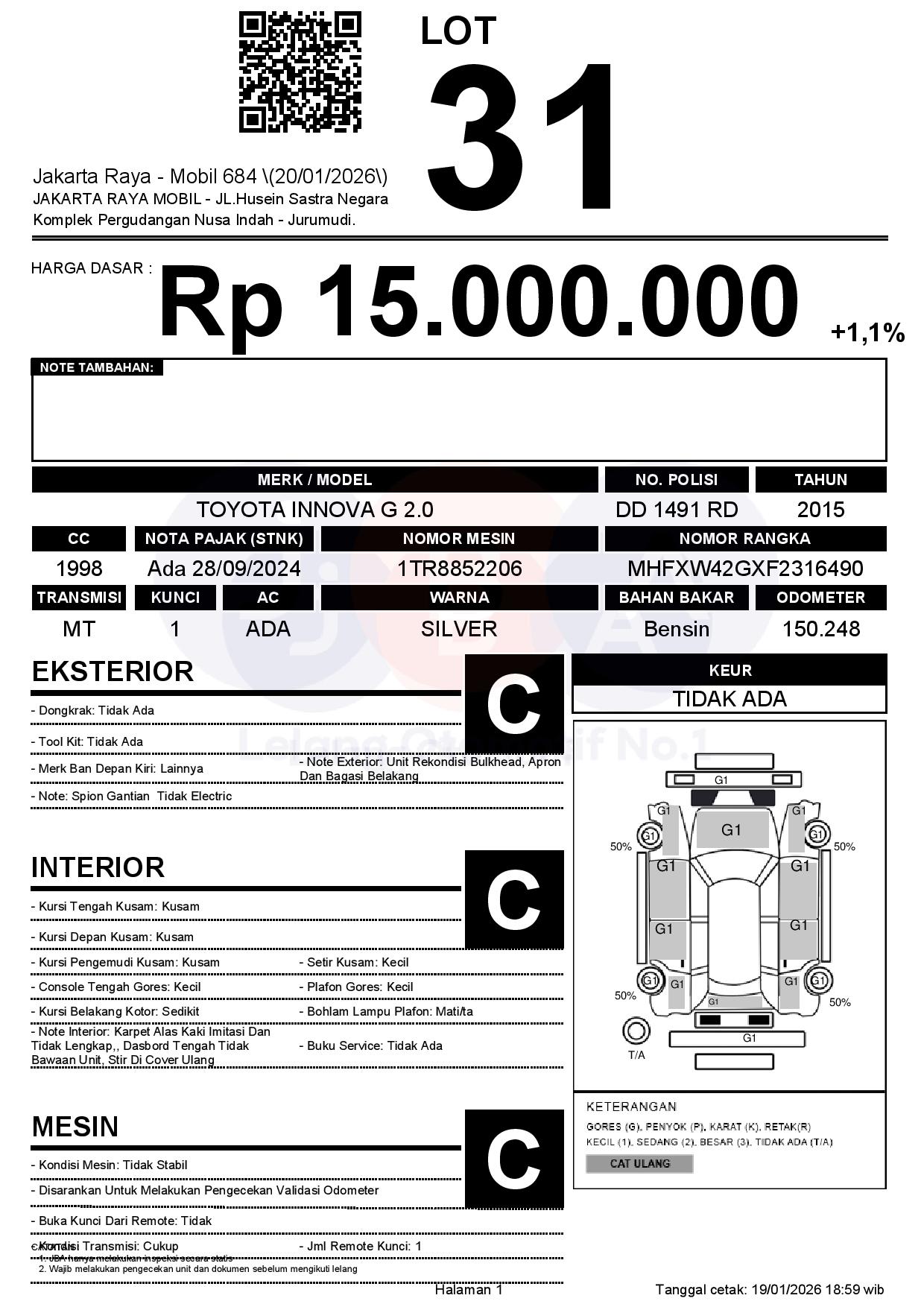 Auction Date: 20/01/2026 13:00 | WIB