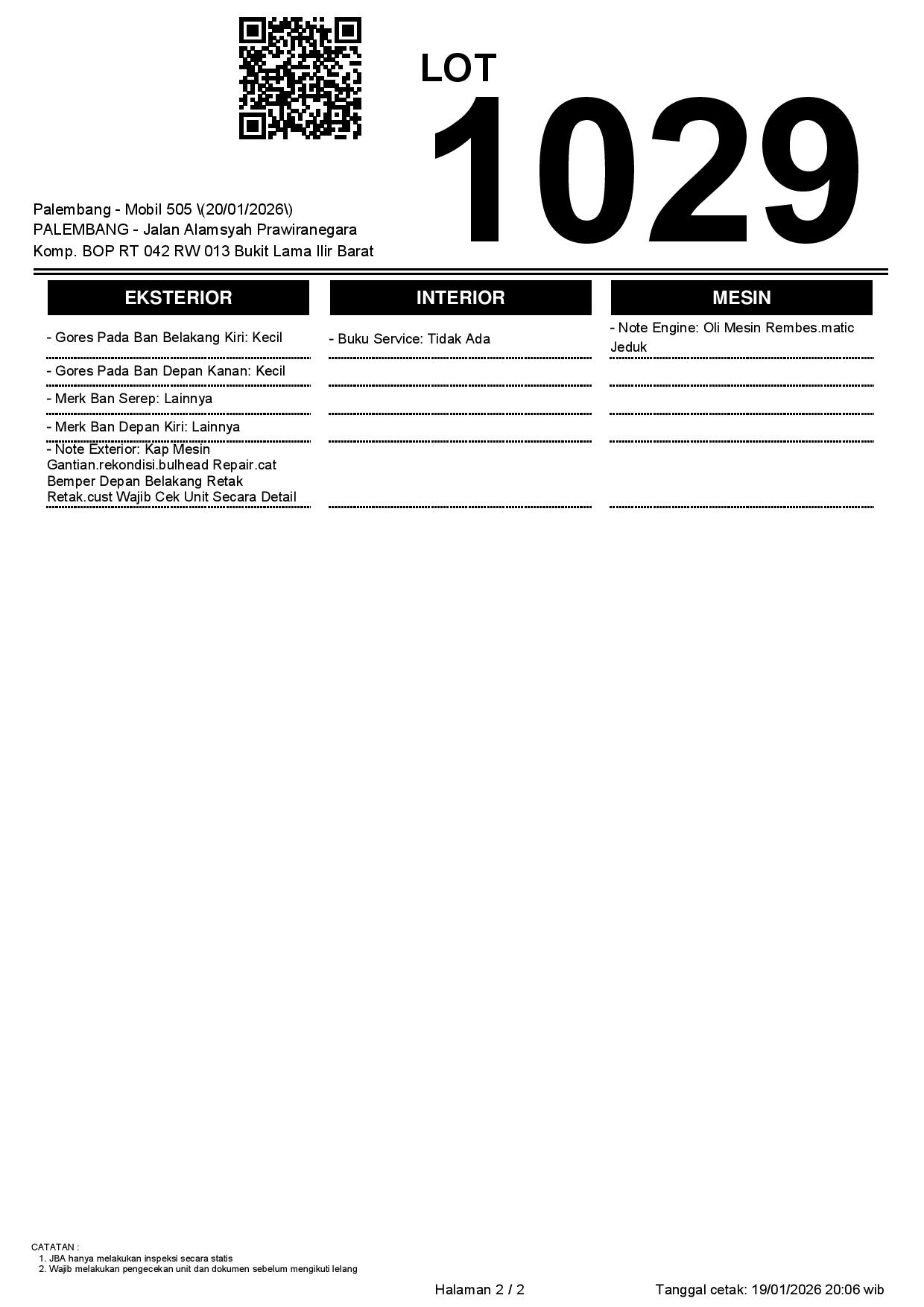 Auction Date: 20/01/2026 13:00 | WIB