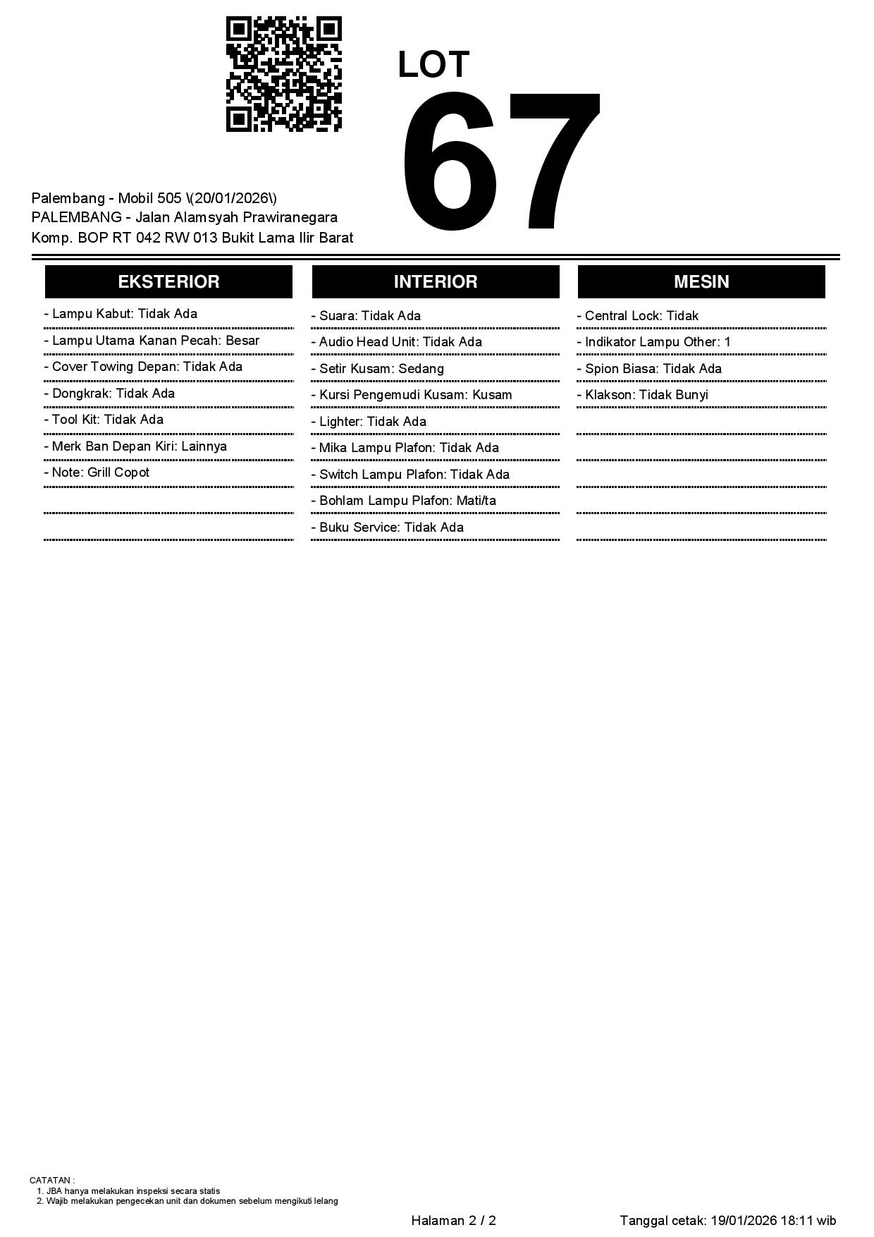 Auction Date: 20/01/2026 13:00 | WIB