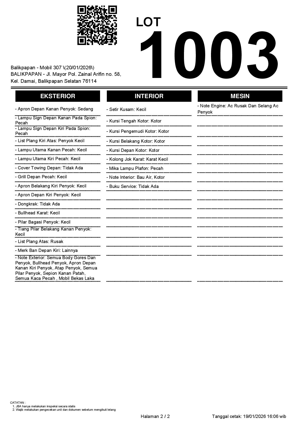 Auction Date: 20/01/2026 14:00 | WITA