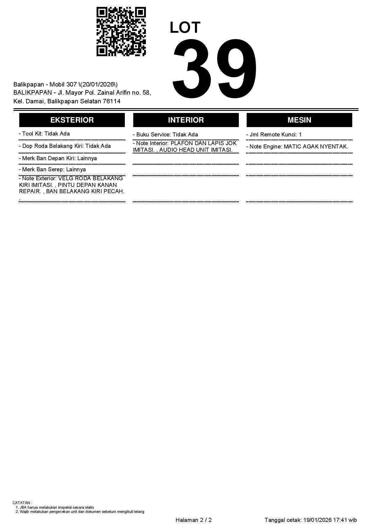Auction Date: 20/01/2026 13:00 | WITA
