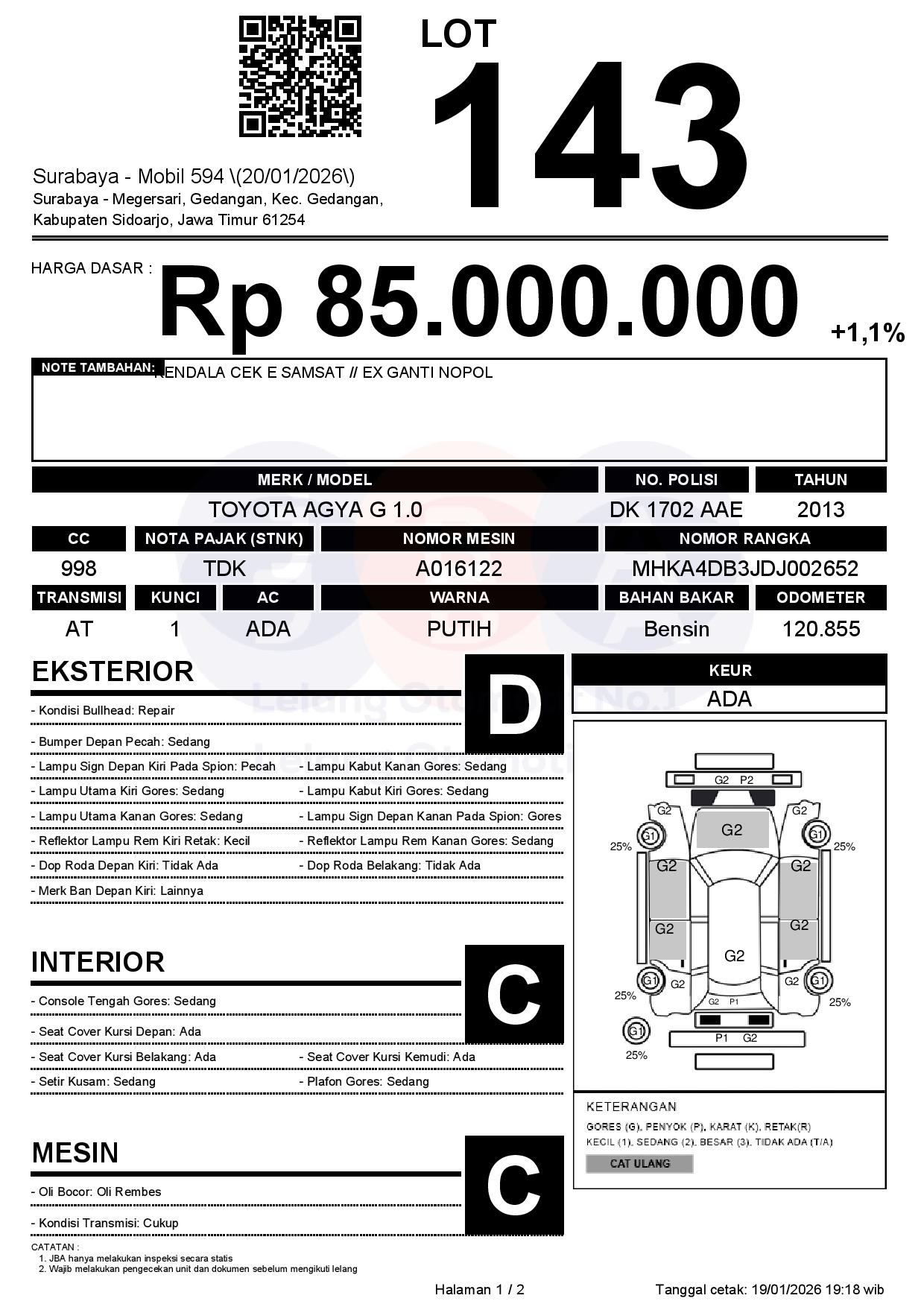 Auction Date: 20/01/2026 13:00 | WIB