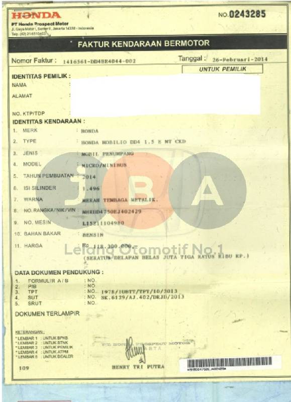 LEMBAR NOTICE PAJAK ASLI TIDAK ADA // TERLAMPIR BUKTI BAYAR PAJAK ONLINE //