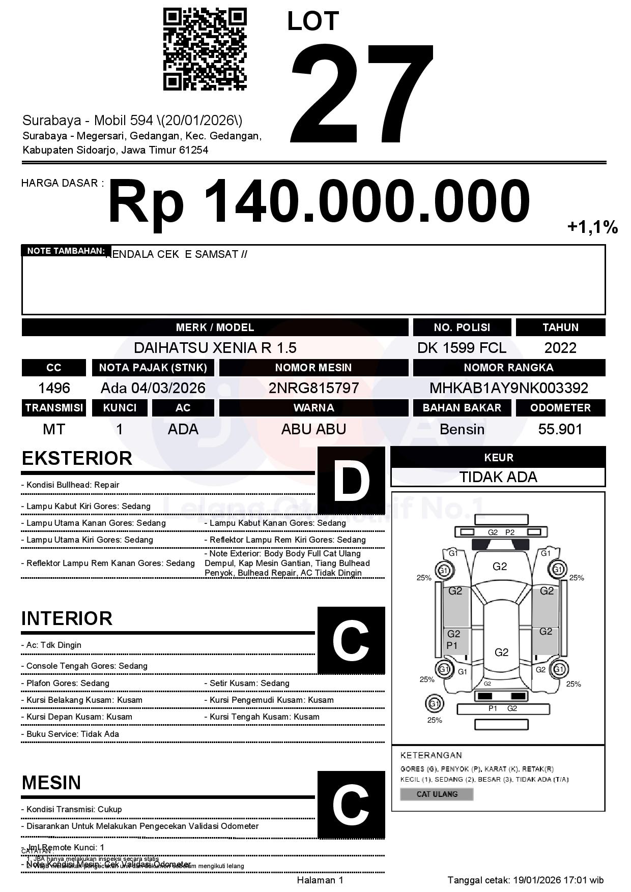 Auction Date: 20/01/2026 13:00 | WIB