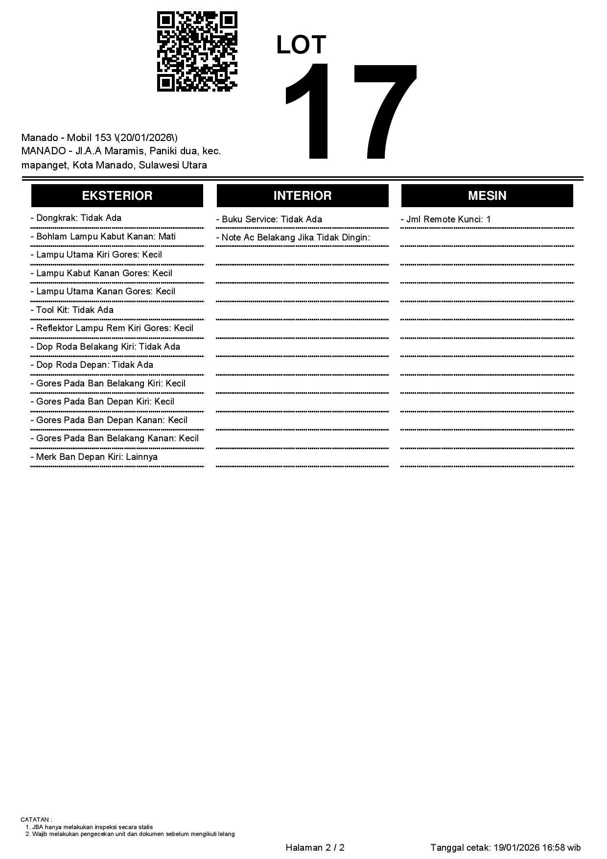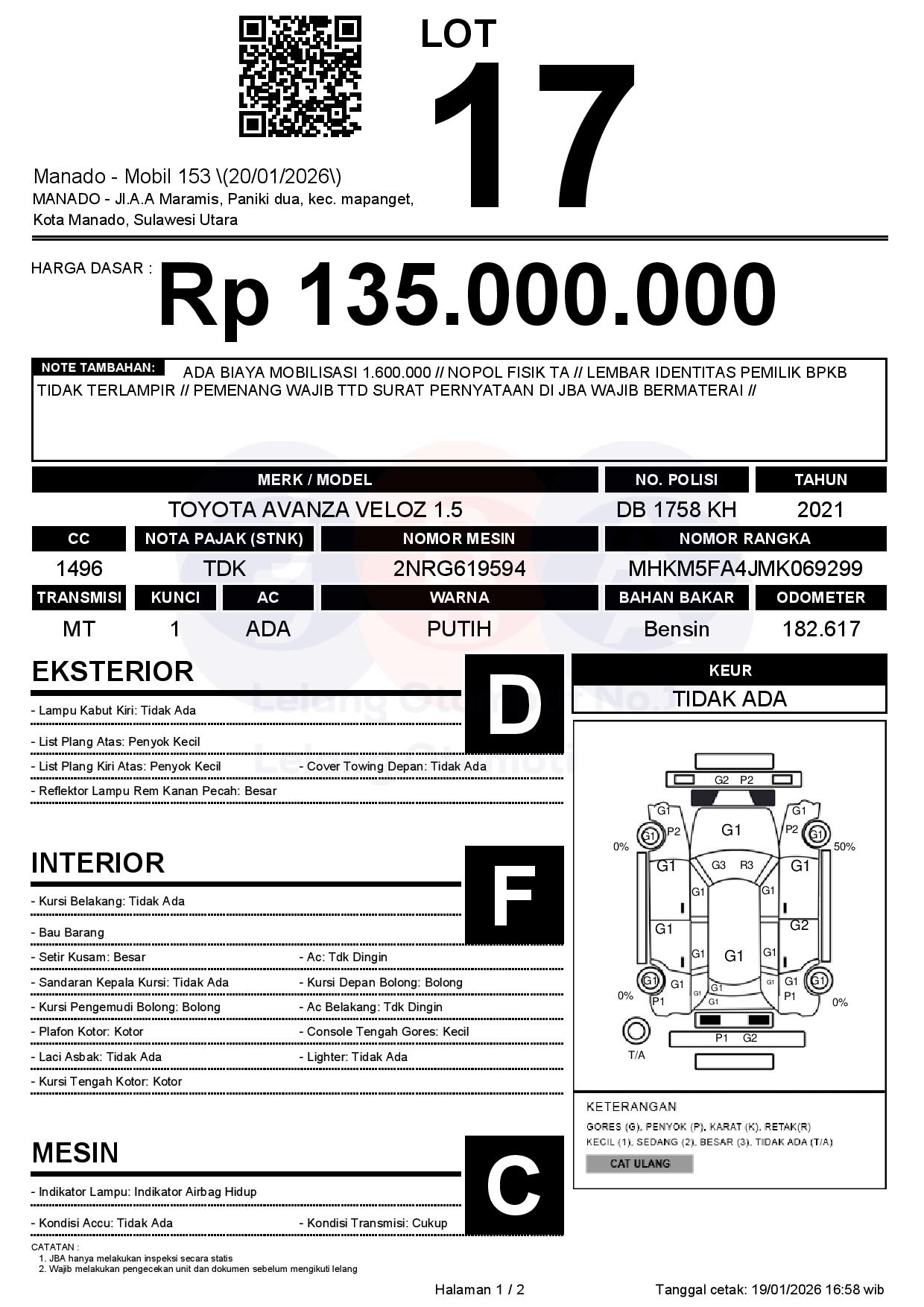 ADA BIAYA MOBILISASI 1.600.000 // NOPOL FISIK TA // LEMBAR IDENTITAS PEMILIK BPKB TIDAK TERLAMPIR // PEMENANG WAJIB TTD SURAT PERNYATAAN DI JBA WAJIB BERMATERAI //