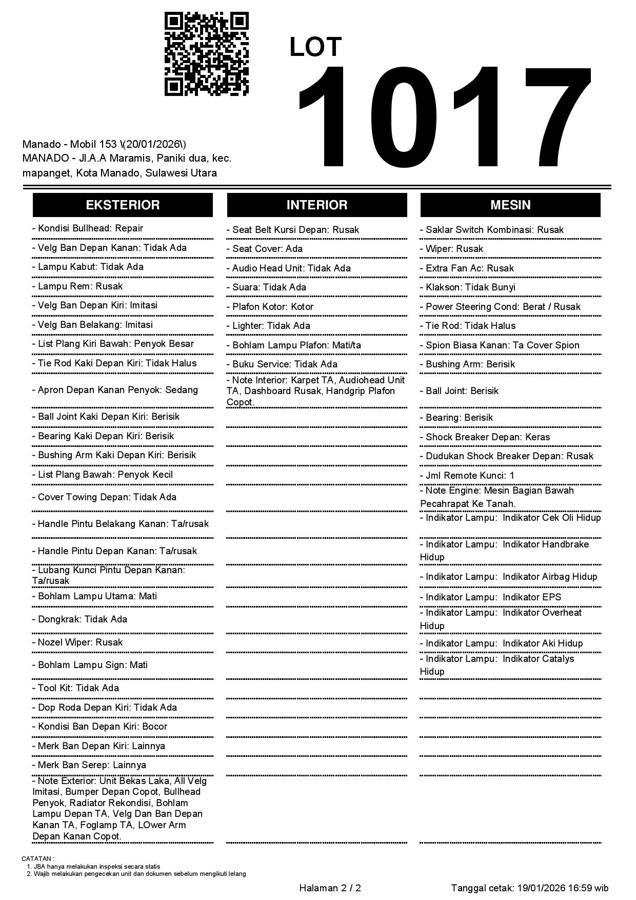 Auction Date: 20/01/2026 14:00 | WITA