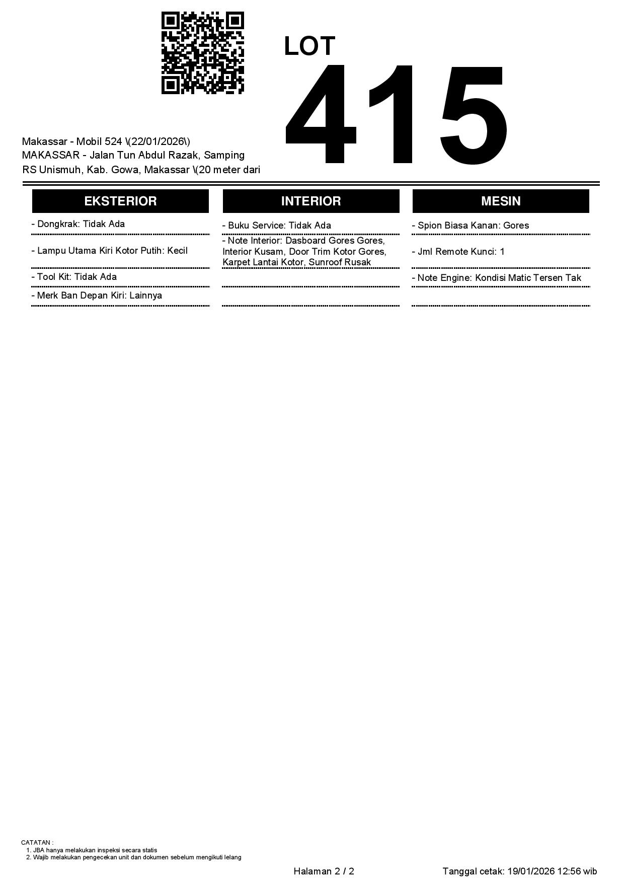 Auction Date: 22/01/2026 13:00 | WITA