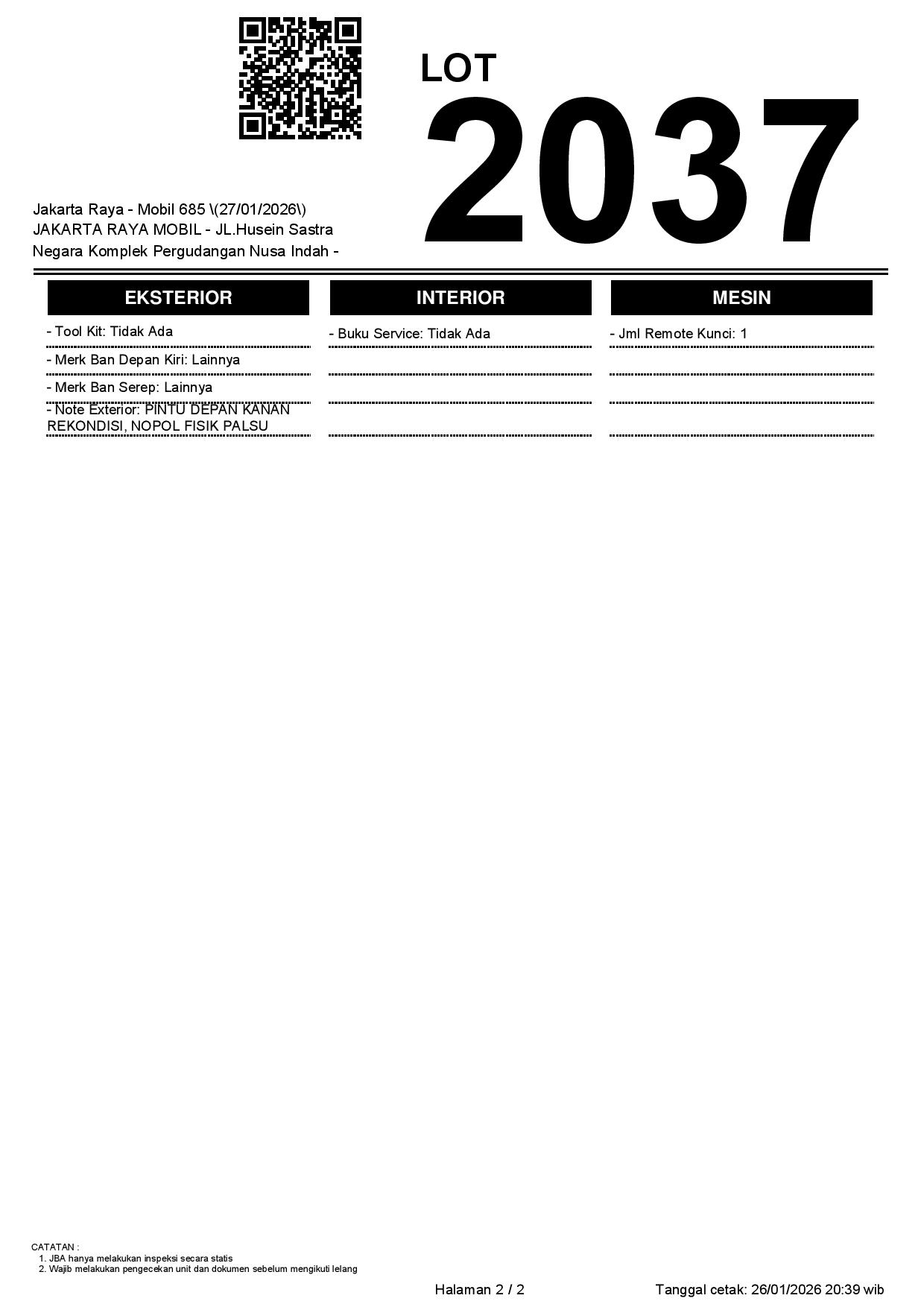 Auction Date: 27/01/2026 14:00 | WIB