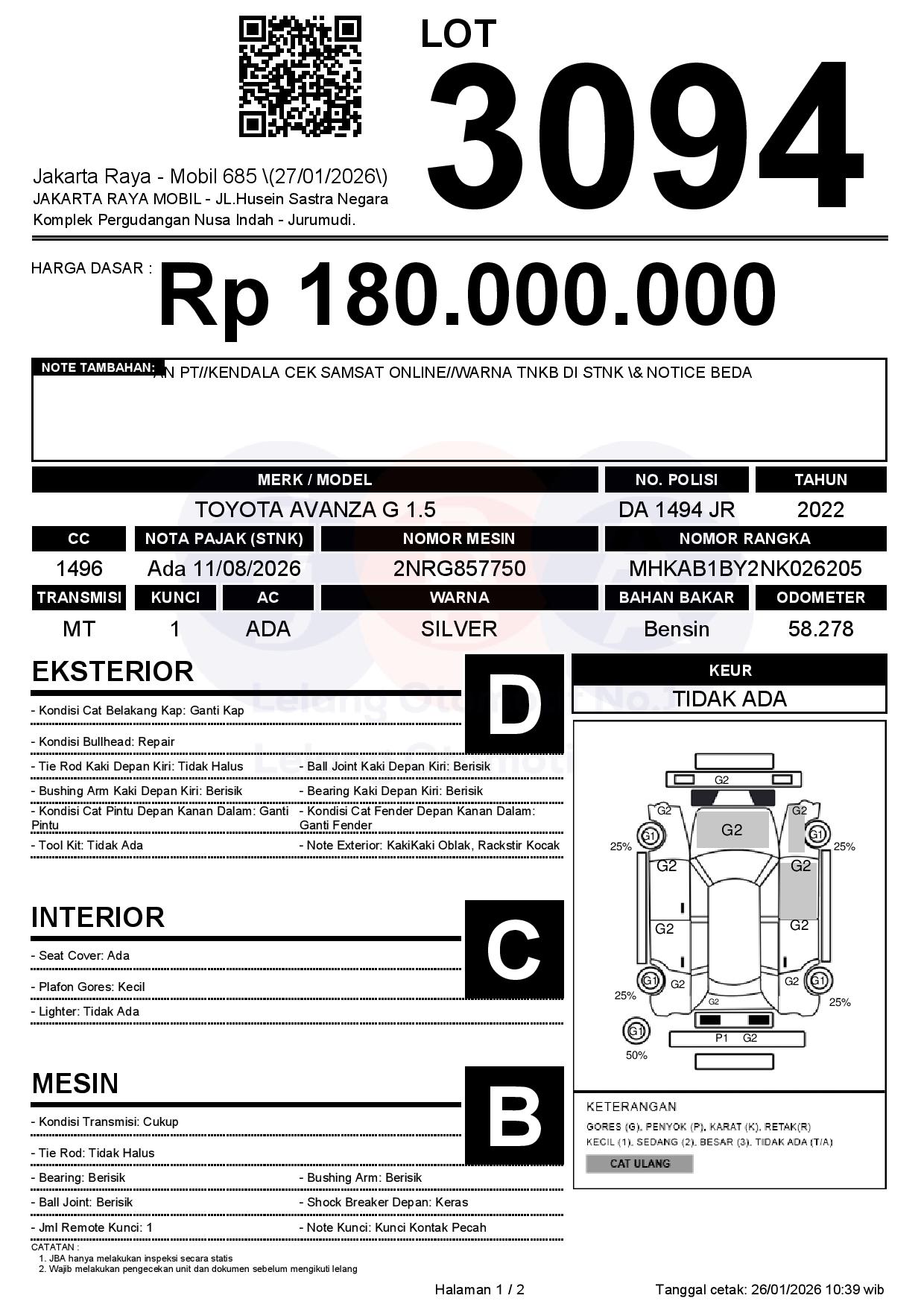 Auction Date: 27/01/2026 13:00 | WIB