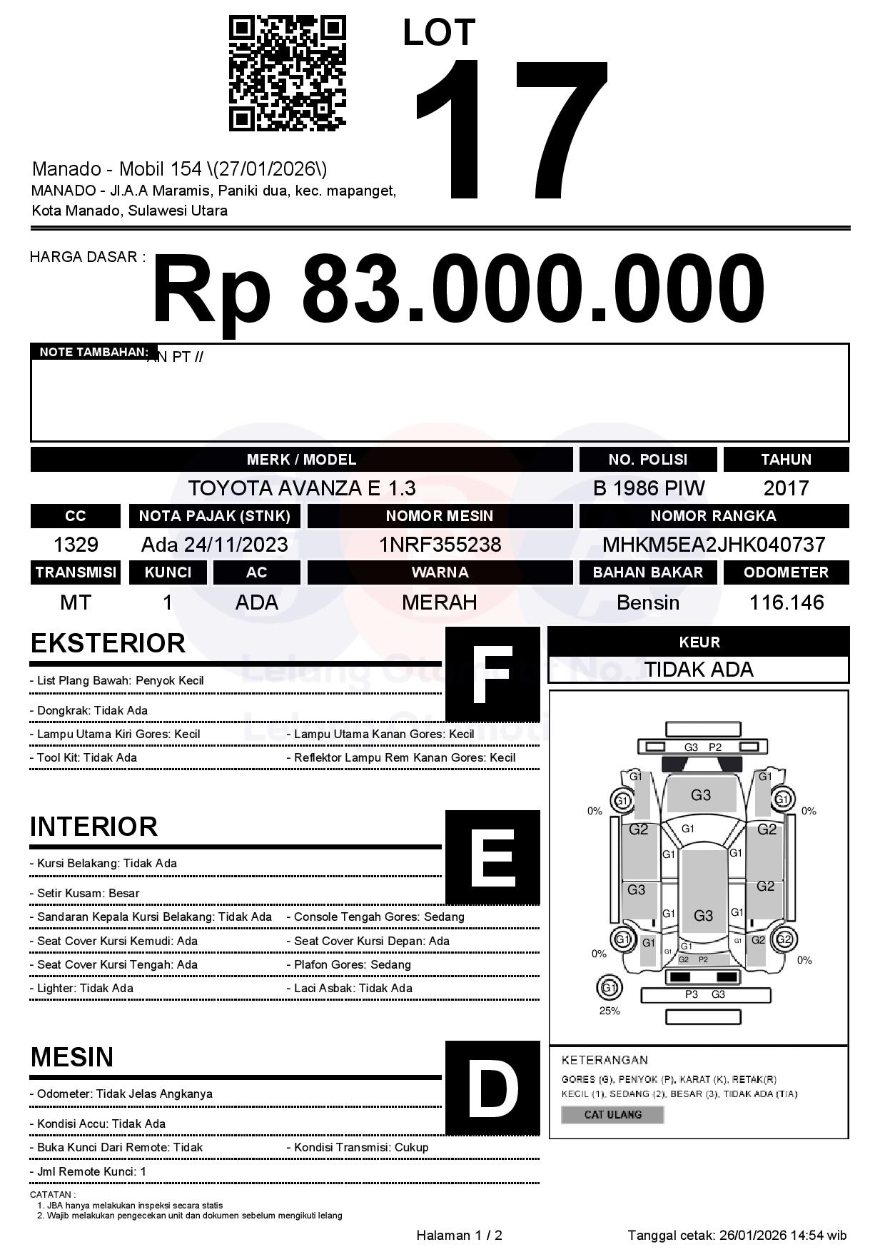 Auction Date: 27/01/2026 13:00 | WITA
