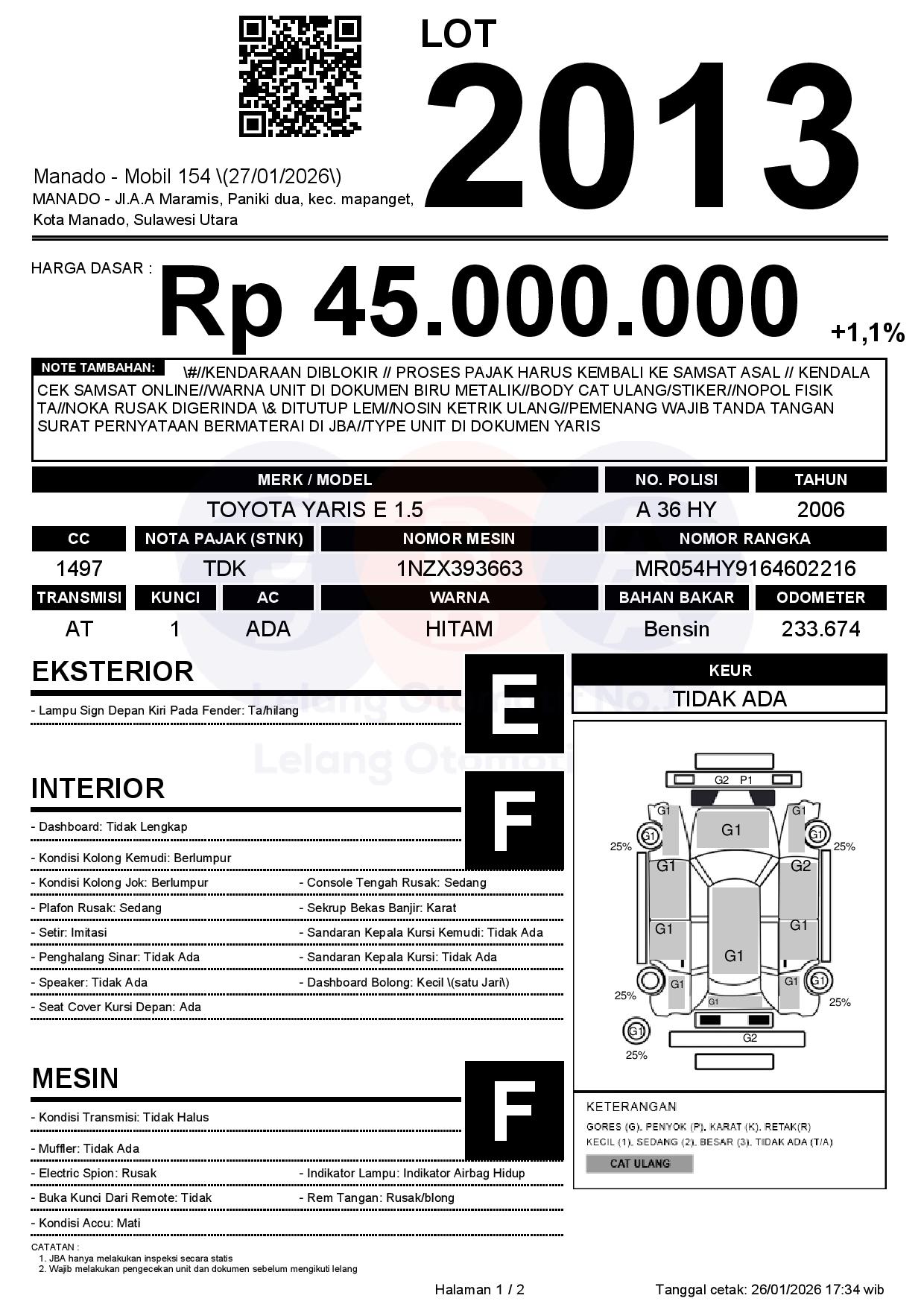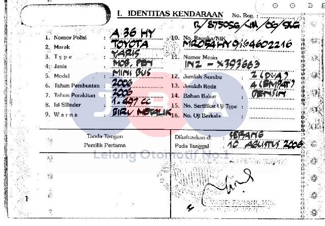 #//KENDARAAN DIBLOKIR // PROSES PAJAK HARUS KEMBALI KE SAMSAT ASAL // KENDALA CEK SAMSAT ONLINE//WARNA UNIT DI DOKUMEN BIRU METALIK//BODY CAT ULANG/STIKER//NOPOL FISIK TA//NOKA RUSAK DIGERINDA & DITUTUP LEM//NOSIN KETRIK ULANG//PEMENANG WAJIB TANDA TANGAN SURAT PERNYATAAN BERMATERAI DI JBA//TYPE UNIT DI DOKUMEN YARIS
