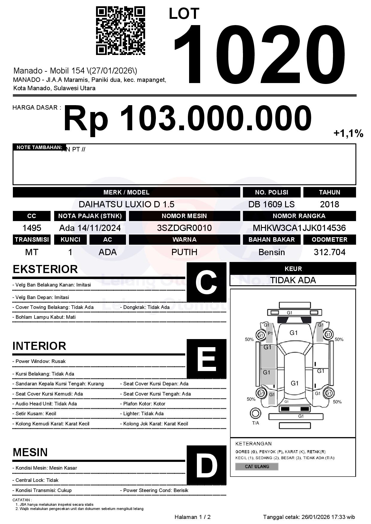 Auction Date: 27/01/2026 14:00 | WITA