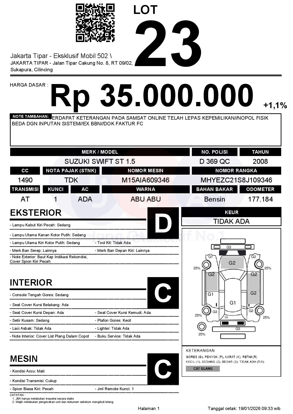 Auction Date: 19/01/2026 13:00 | WIB