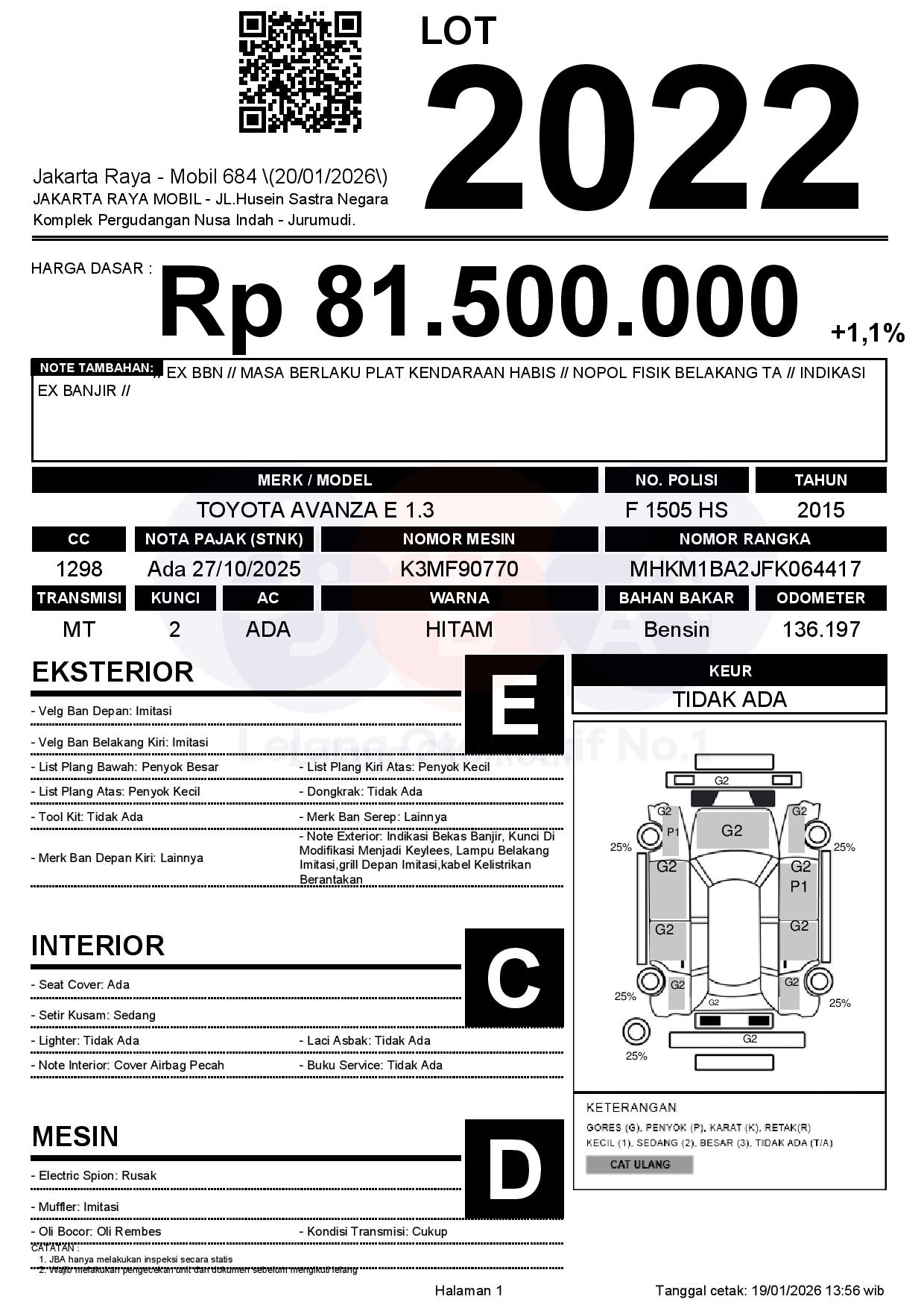 Auction Date: 19/01/2026 13:00 | WIB