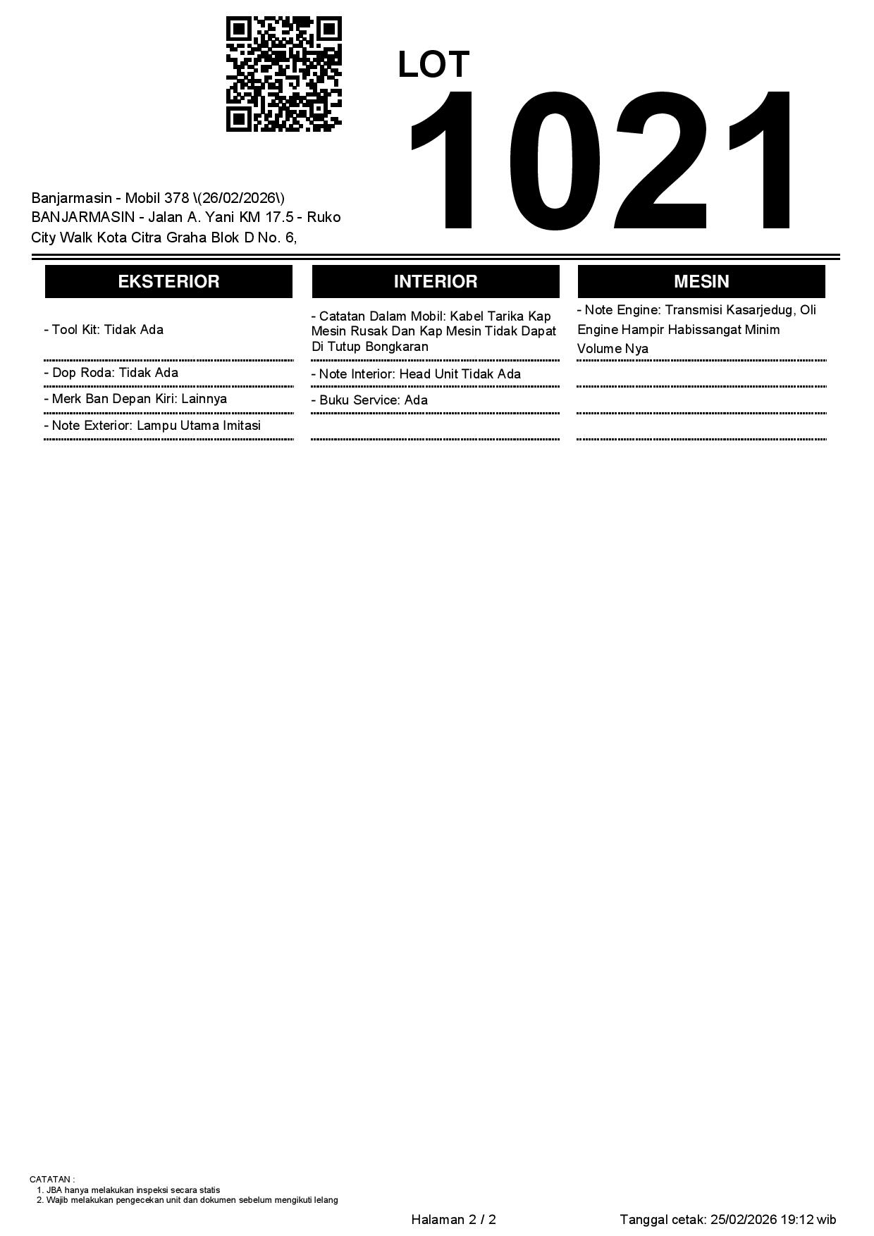 Auction Date: 26/02/2026 14:00 | WITA