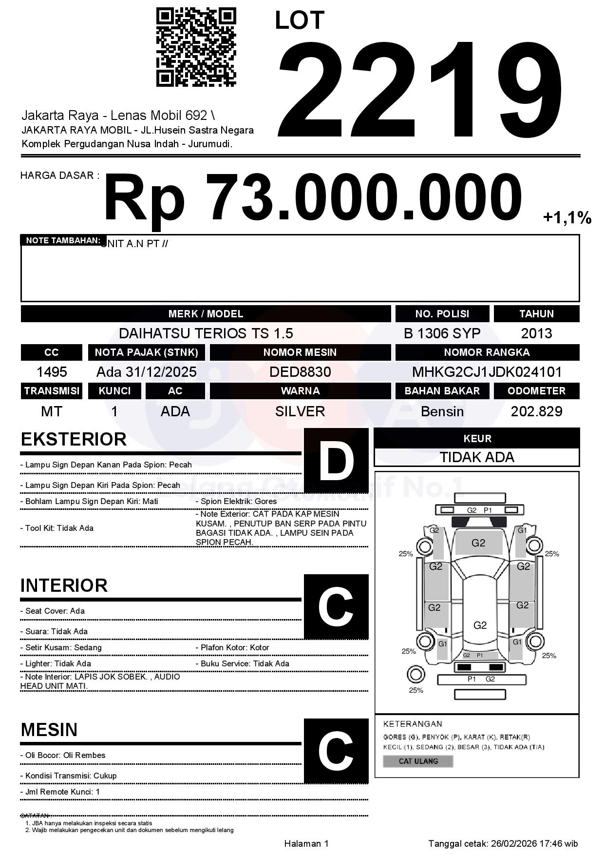Auction Date: 26/02/2026 14:00 | WITA