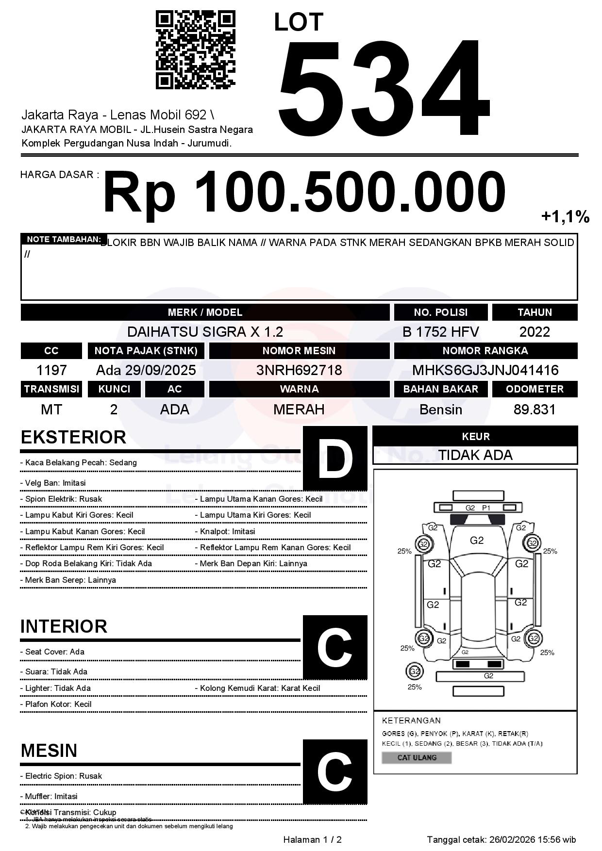 Auction Date: 26/02/2026 13:00 | WITA