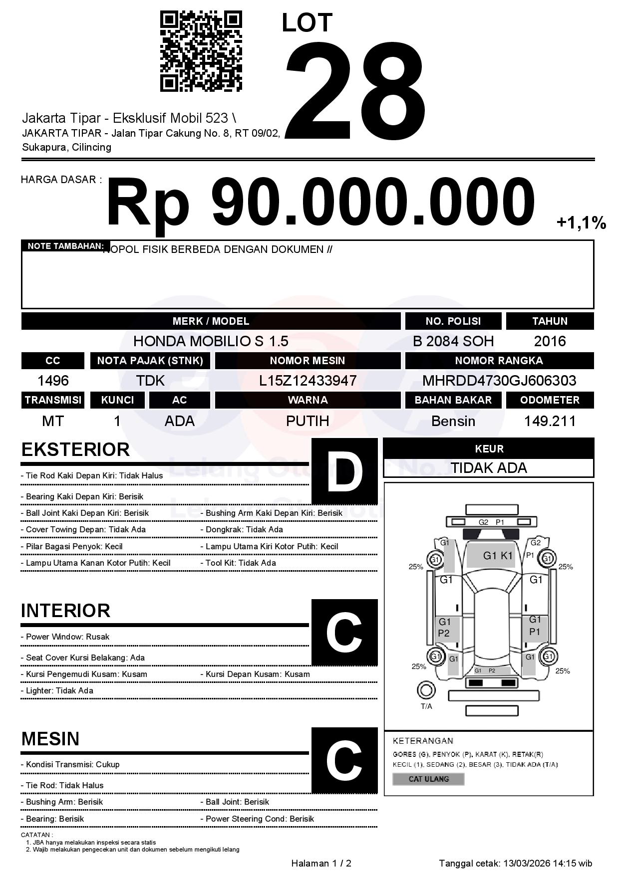 Auction Date: 16/03/2026 13:00 | WIB
