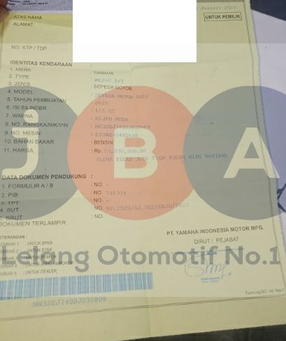 DISKON ADMIN 250K // LEMBAR STNK T/A // HANYA ADA LEMBAR NOTICE PAJAK // WARNA UNIT DI DOKUMEN HIJAU MUDA // NOPOL FISIK TA