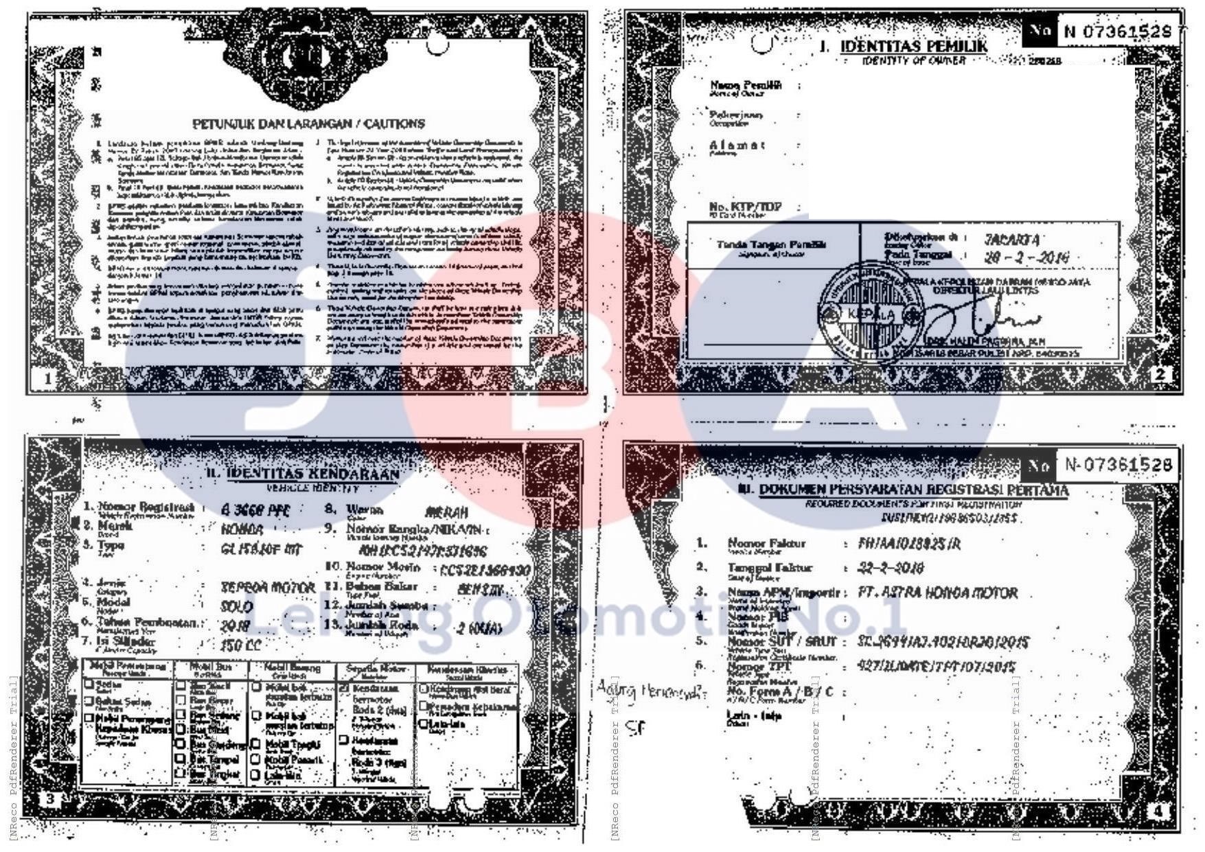 AN PT // NAMA PEMILIK DI STNK DISINGKAT // SCAN BPKB HITAM PUTIH TIDAK TERLIHAT JELAS // PEMENANG WAJIB TTD SURAT PERNYATAAN DI JBA WAJIB BERMATERAI //