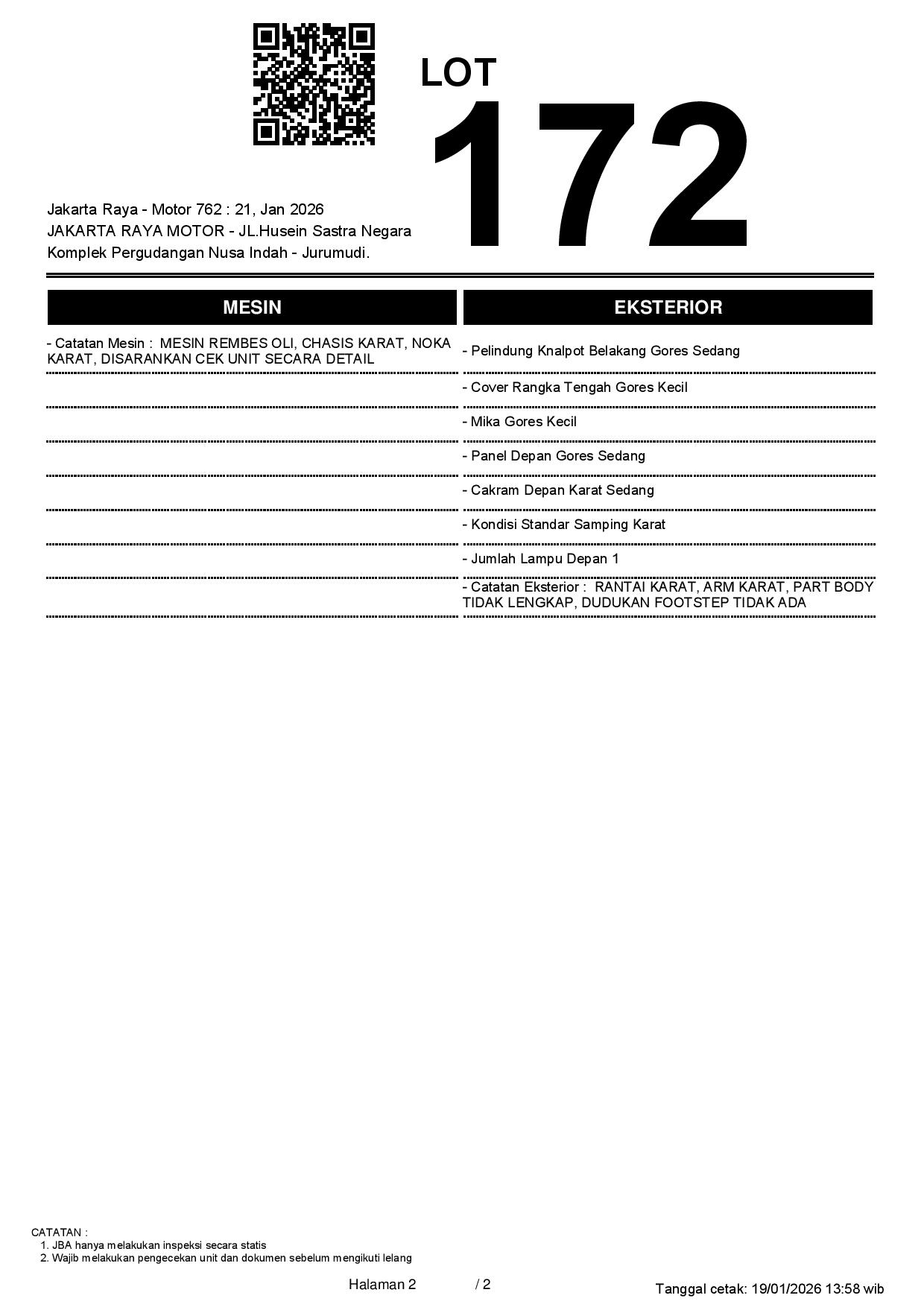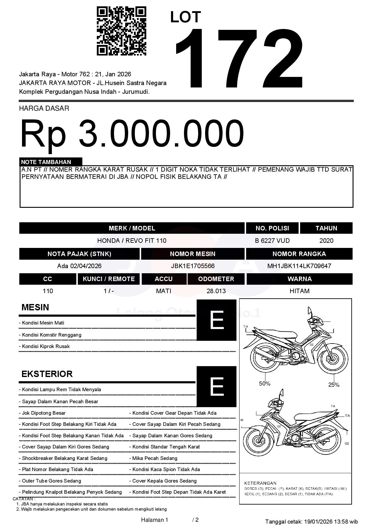 A.N PT // NOMER RANGKA KARAT RUSAK // 1 DIGIT NOKA TIDAK TERLIHAT // PEMENANG WAJIB TTD SURAT PERNYATAAN BERMATERAI DI JBA // NOPOL FISIK BELAKANG TA //