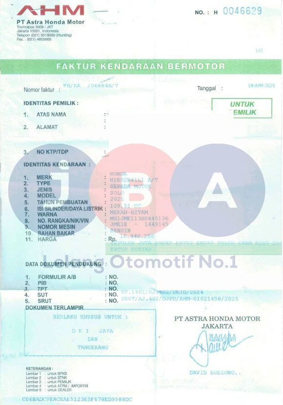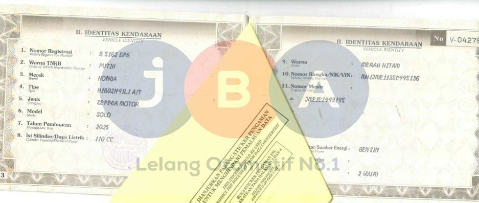 WARNA DI DOC MERAH HITAM // NO RANGKA KARAT 3 DIGIT // PEMENANG WAJIB TTD SURAT PERNYATAAN DI JBA WAJIB BERMATERAI //