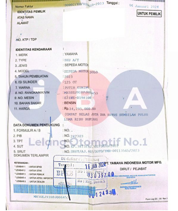 STNK DUPLIKAT // WARNA UNIT DI DOK PUTIH KUNING // KWT BLANKO TANPA MATERAI