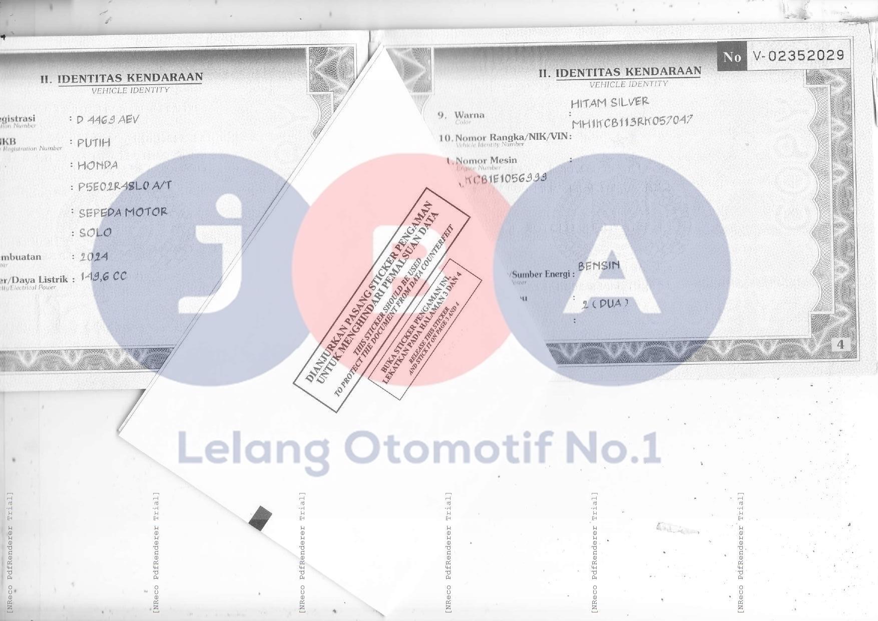 TERDAPAT KETERANGAN PADA SAMSAT ONLINE TELAH LEPAS KEPEMILIKAN//WARNA UNIT DI DOKUMEN HITAM SILVER//NOPOL FISIK BELAKANG TA//DOK FAKTUR FC
