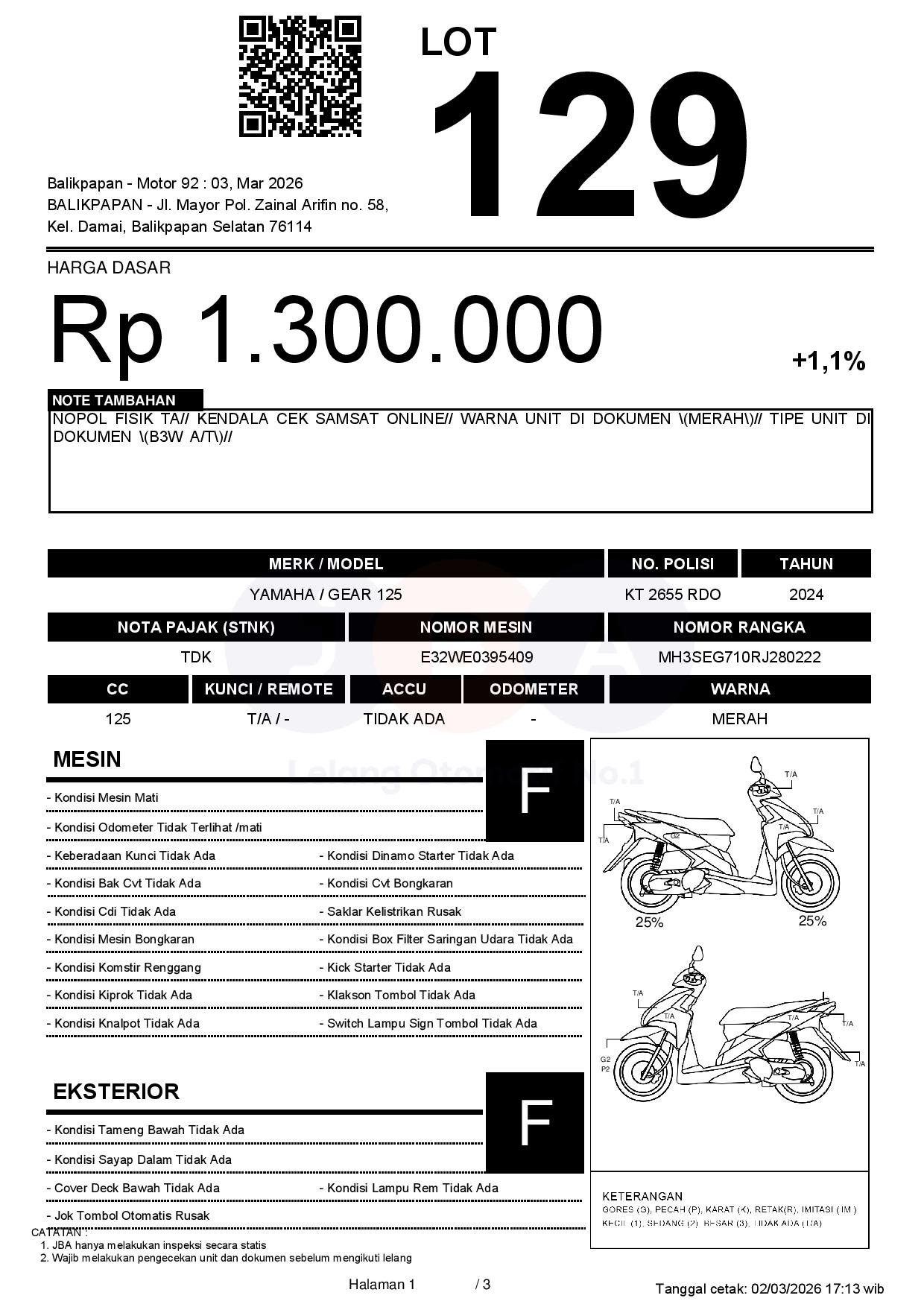 NOPOL FISIK TA// KENDALA CEK SAMSAT ONLINE// WARNA UNIT DI DOKUMEN (MERAH)// TIPE UNIT DI DOKUMEN (B3W A/T)//