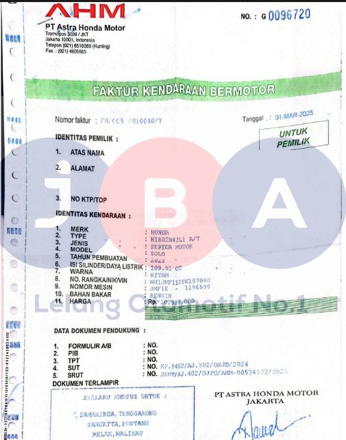 PERBEDAAN PENULISAN NOKA DOKUMEN FAKTUR DAN FIISIK (MH1JMF112SK197080) SEDANGKAN STNK BPKB (MH1JMF11112SK197080) //