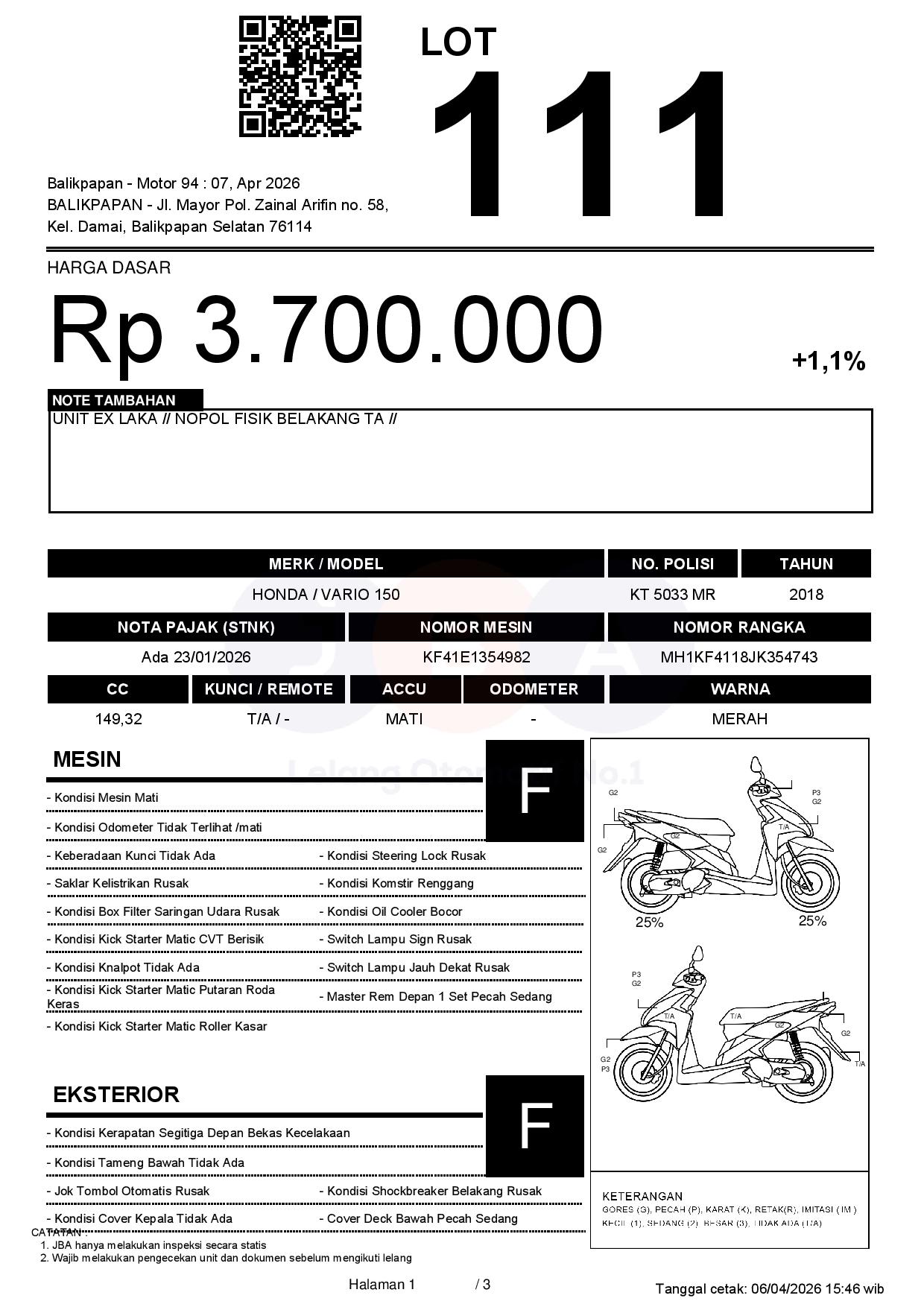 UNIT EX LAKA // NOPOL FISIK BELAKANG TA //