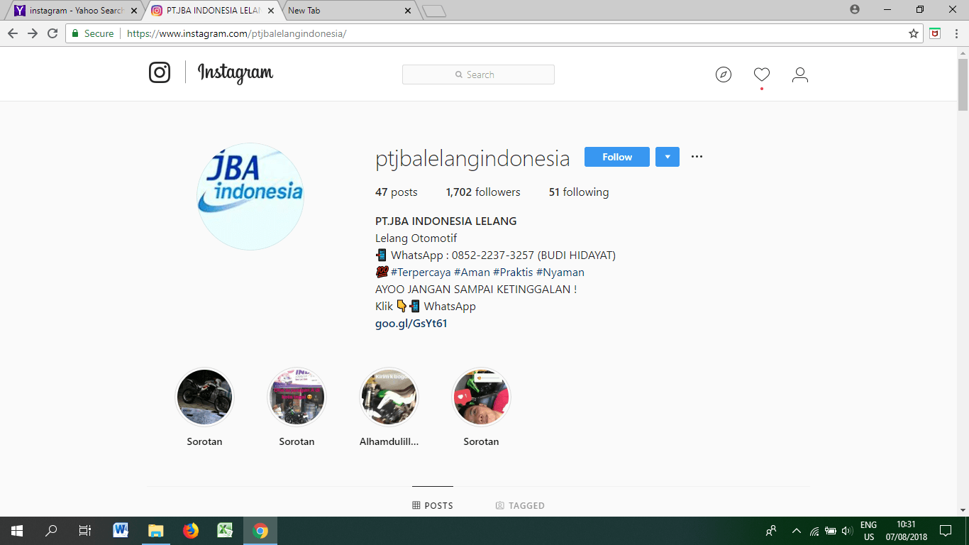 Agar Anda terhindar dari modus penipuan online yang mengatasnamakan PT JBA Indonesia, kami menyarankan agar Anda selalu memastikan bahwa situs atau akun yang Anda kunjungi merupakan benar-benar situs resmi yang dimiliki PT JBA Indonesia. Selain itu, hindari melakukan transaksi di luar nomor rekening resmi PT JBA Indonesia. Kami tidak bertanggung jawab atas semua transaksi yang terjadi di luar rekening tersebut.