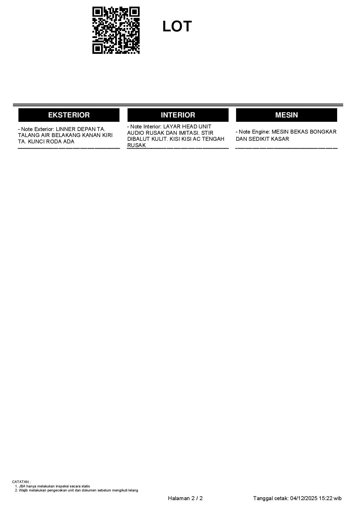 2. Peserta lelang wajib cek unit & dokumen