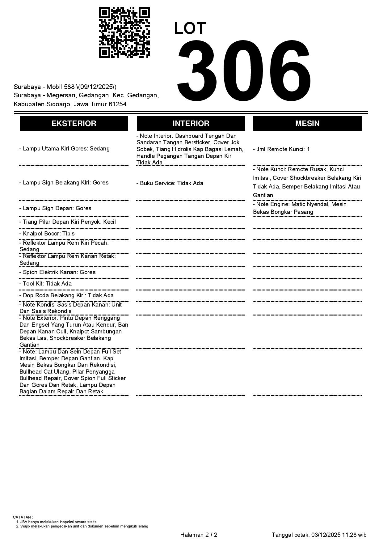 1. Peserta lelang wajib cek unit & dokumen
