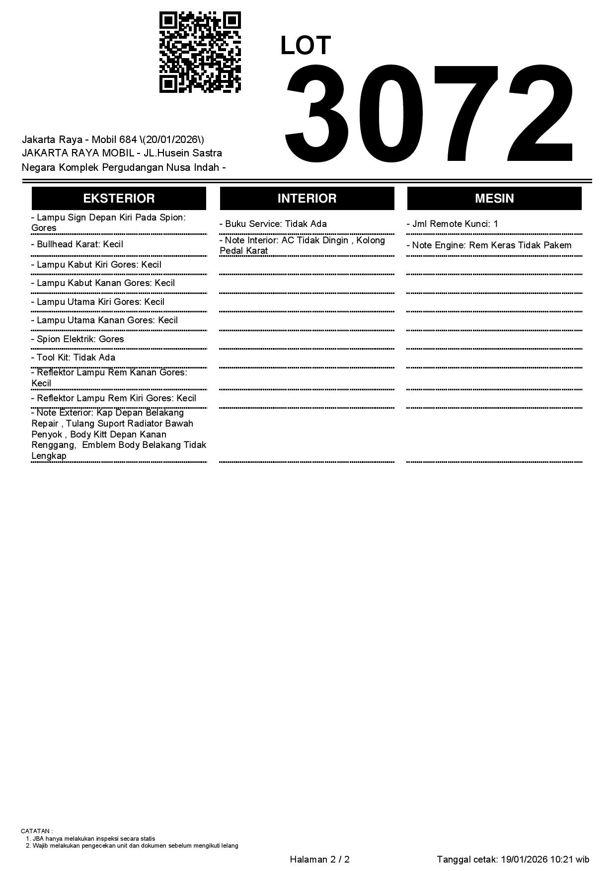 2. Peserta lelang wajib cek unit & dokumen