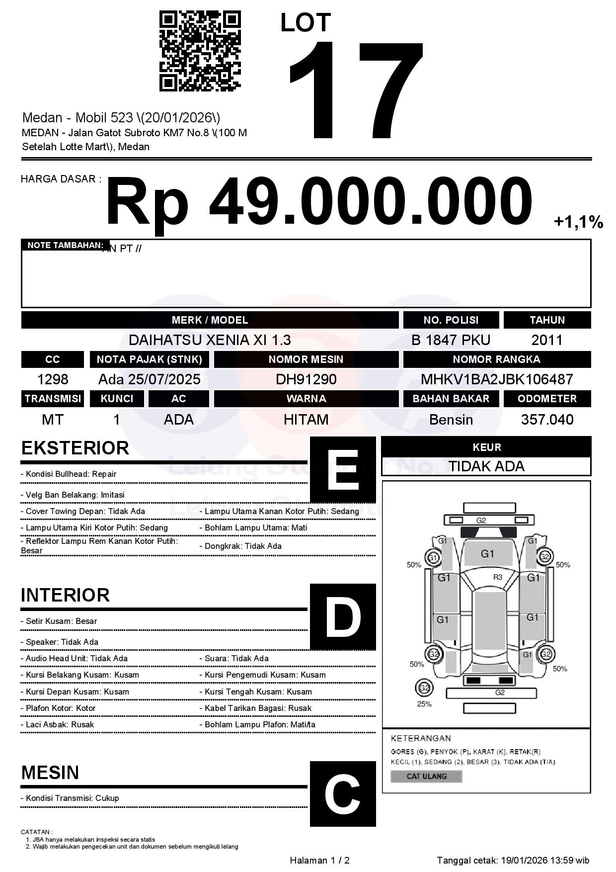 Tanggal Lelang: 20/01/2026 | 13:00 WIB