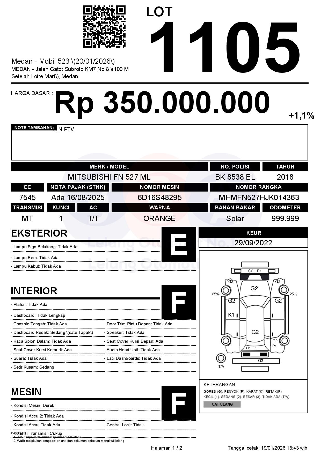 Tanggal Lelang: 20/01/2026 | 14:00 WIB