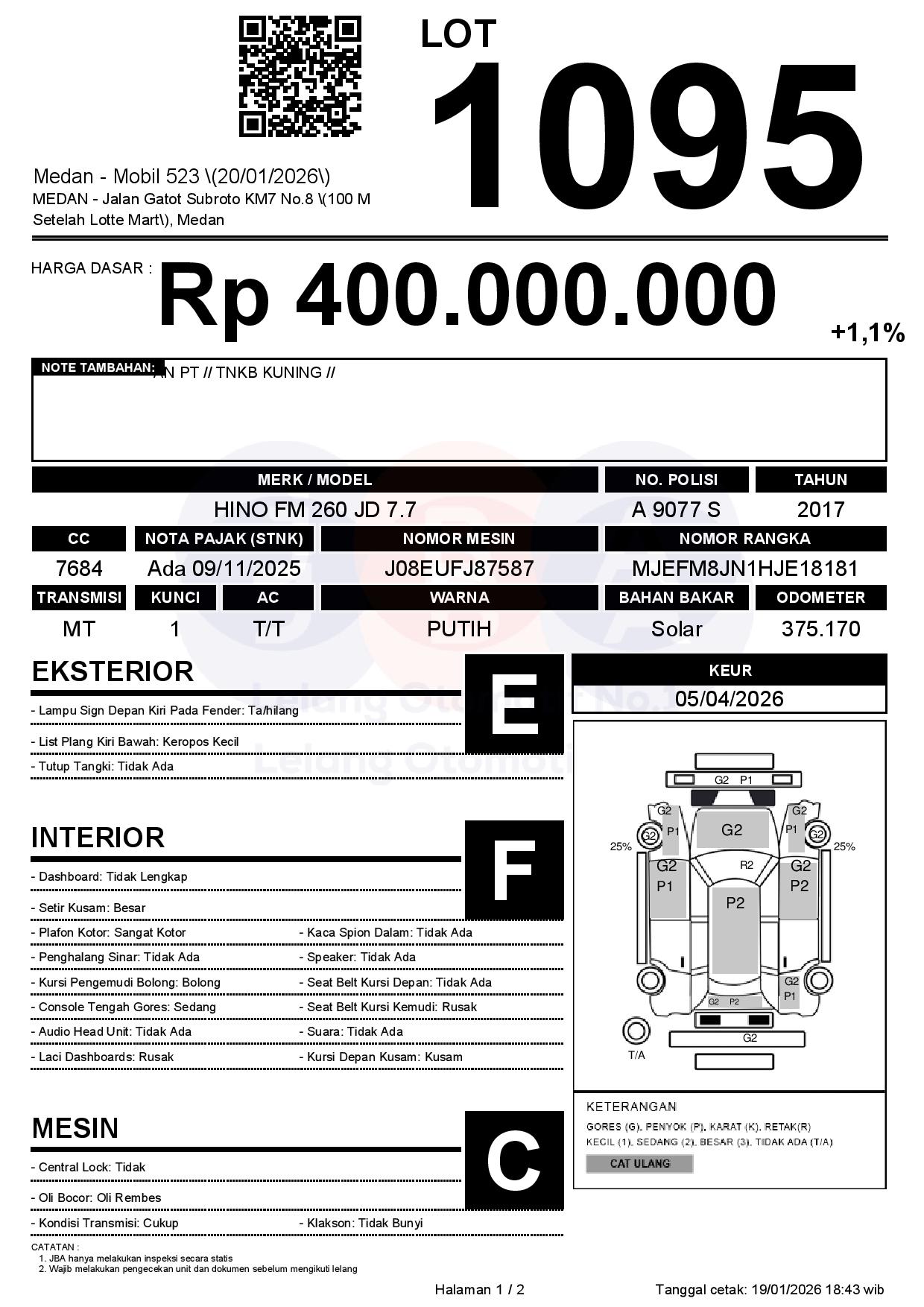 Tanggal Lelang: 20/01/2026 | 14:00 WIB