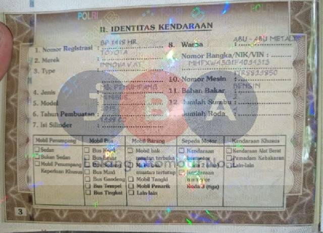 WARNA TNKB DI NOTA PAJAK & STNK BERBEDA// TERDAPAT KET FASILITAS FTZ TIDAK BISA KELUAR WILAYAH BATAM //